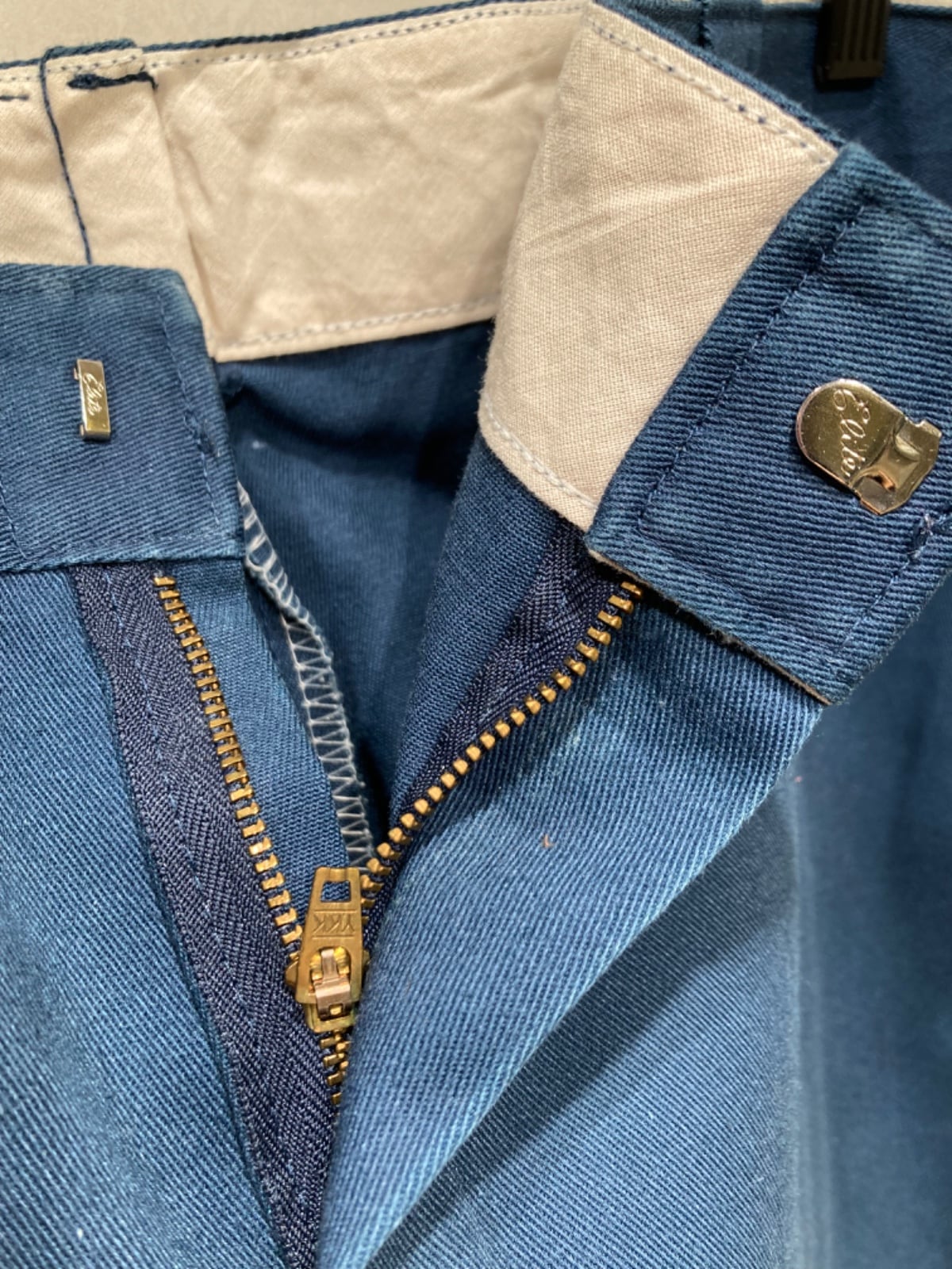 今回の個体はバックポケット上の刺繍ワッペン、YKK刻印の真鍮ジッパー、内側に残るプリントのケアラベルなど量産期の仕様が揃っており、工場生産による安定した作りの一本と判断できる。