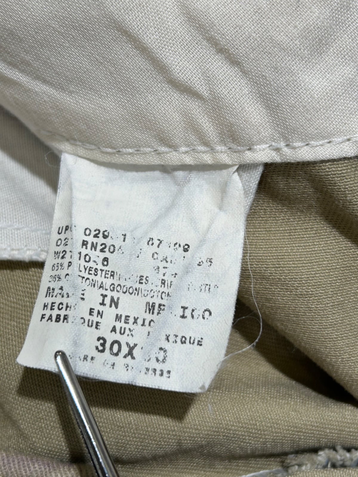 Dickiesの定番ワークパンツは、作業着(ユニフォーム)としての実用性をそのまま街着に取り込んだアイテム。今回の個体は内タグに「MADE IN MEXICO」「65% POLYESTER / 35% COTTON」との表記、金属ジッパーに"IDEAL"刻印が確認できるため、ポリ混紡の量産期モデルであることがわかる。こうした仕様は90s後半〜00s以降の生産に多く見られるため、推定年代は00sとしています(根拠: 製造国表記・素材表記・ジッパー刻印・ワッペン位置)。ワーク〜スケート〜ユーティリティなストリートで日常的に使われてきた一本と判断できます。