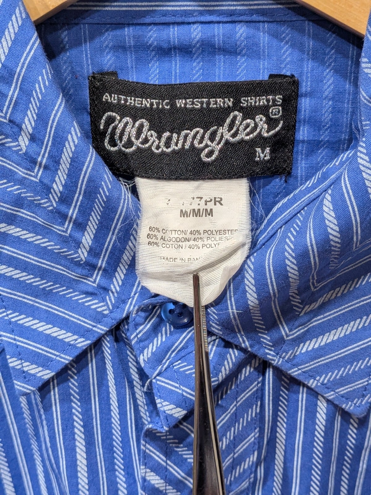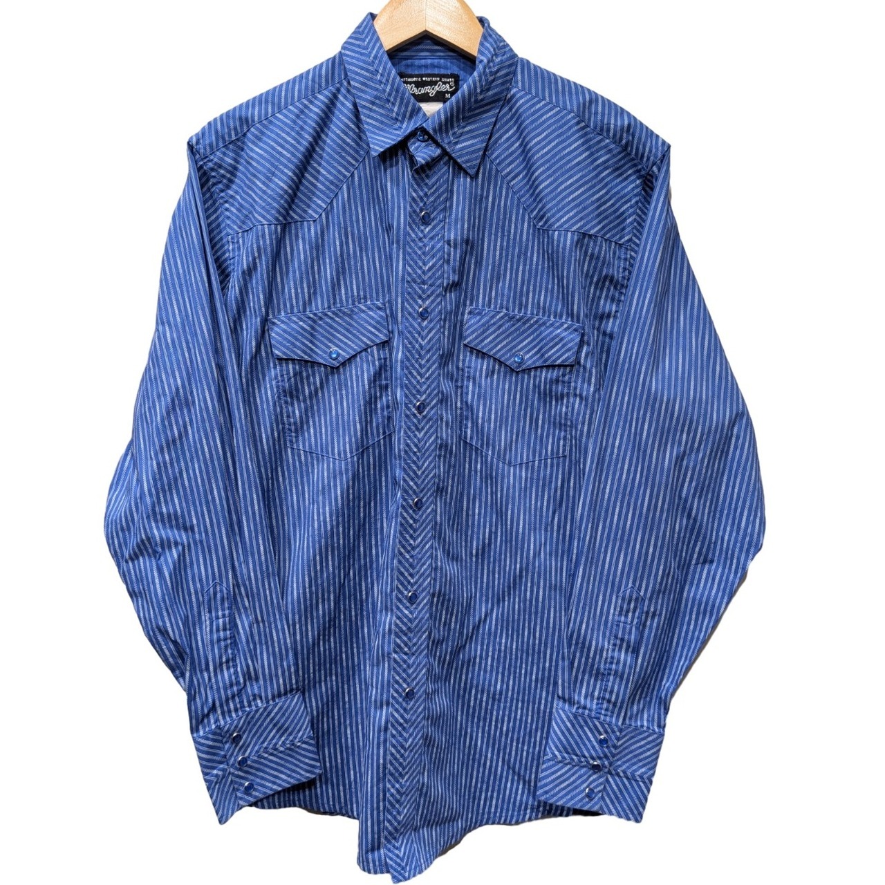 【90s Wrangler】ヘリンボーンストライプ ウエスタンシャツ(Mサイズ)