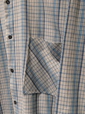 胸ポケットは斜めに配されたパッチポケットでデザインのアクセントになっている。
