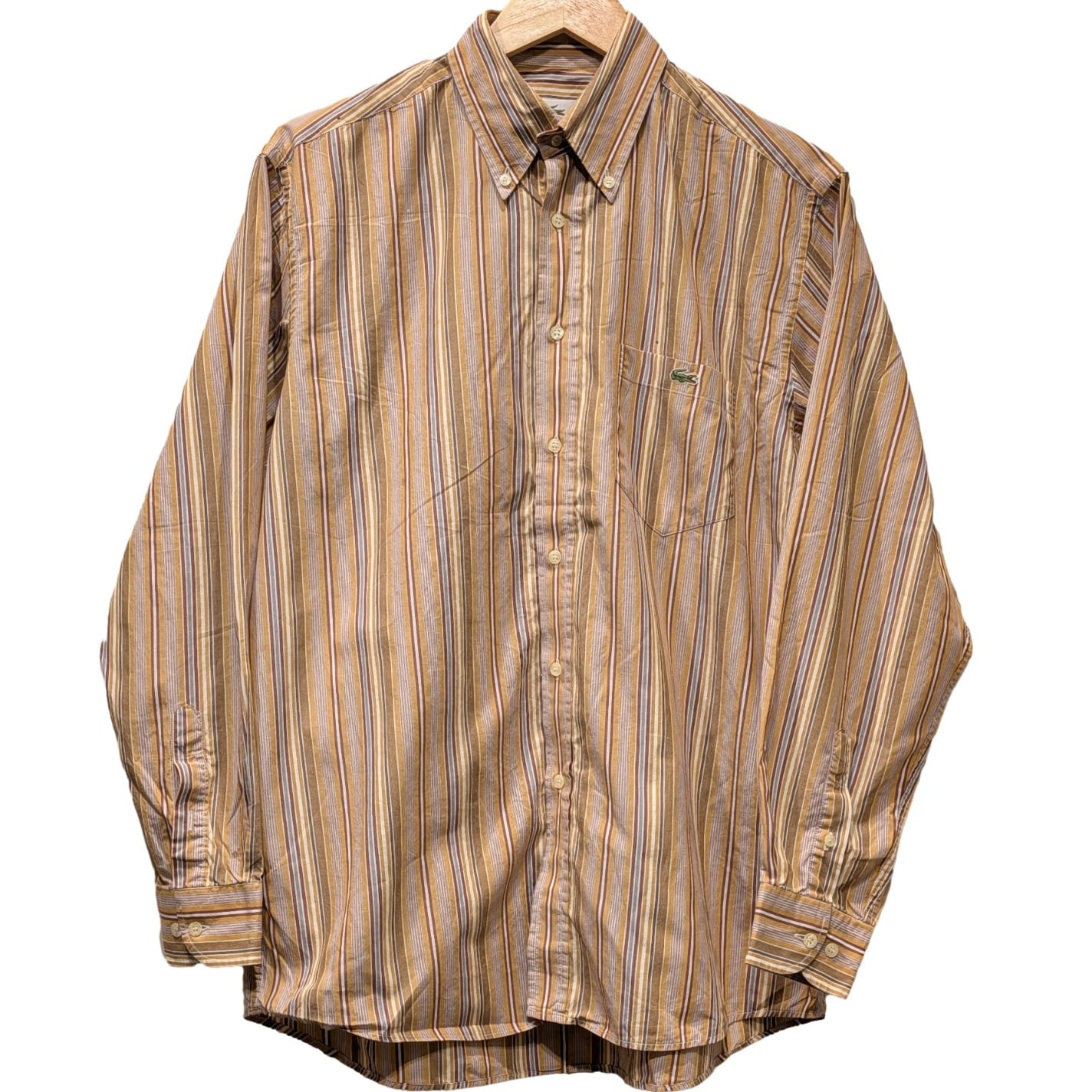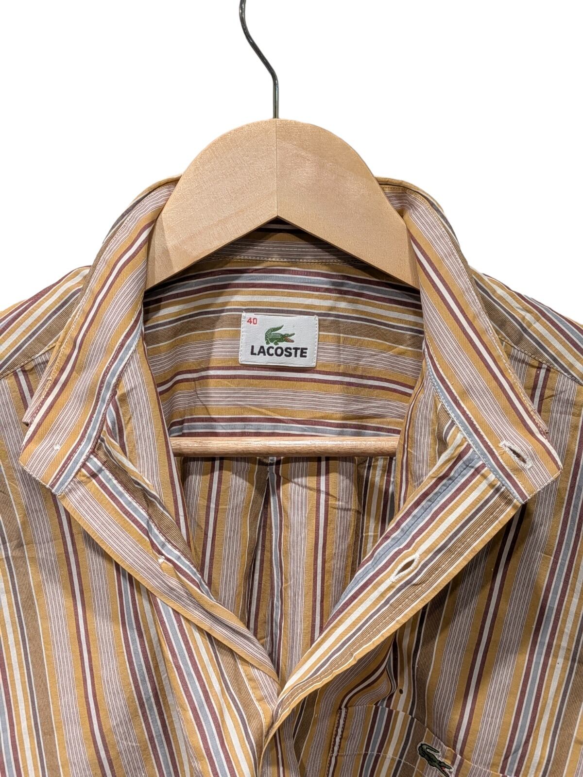 古着 【90s LACOSTE】マルチストライプ ボタンダウンシャツ(Mサイズ相当)