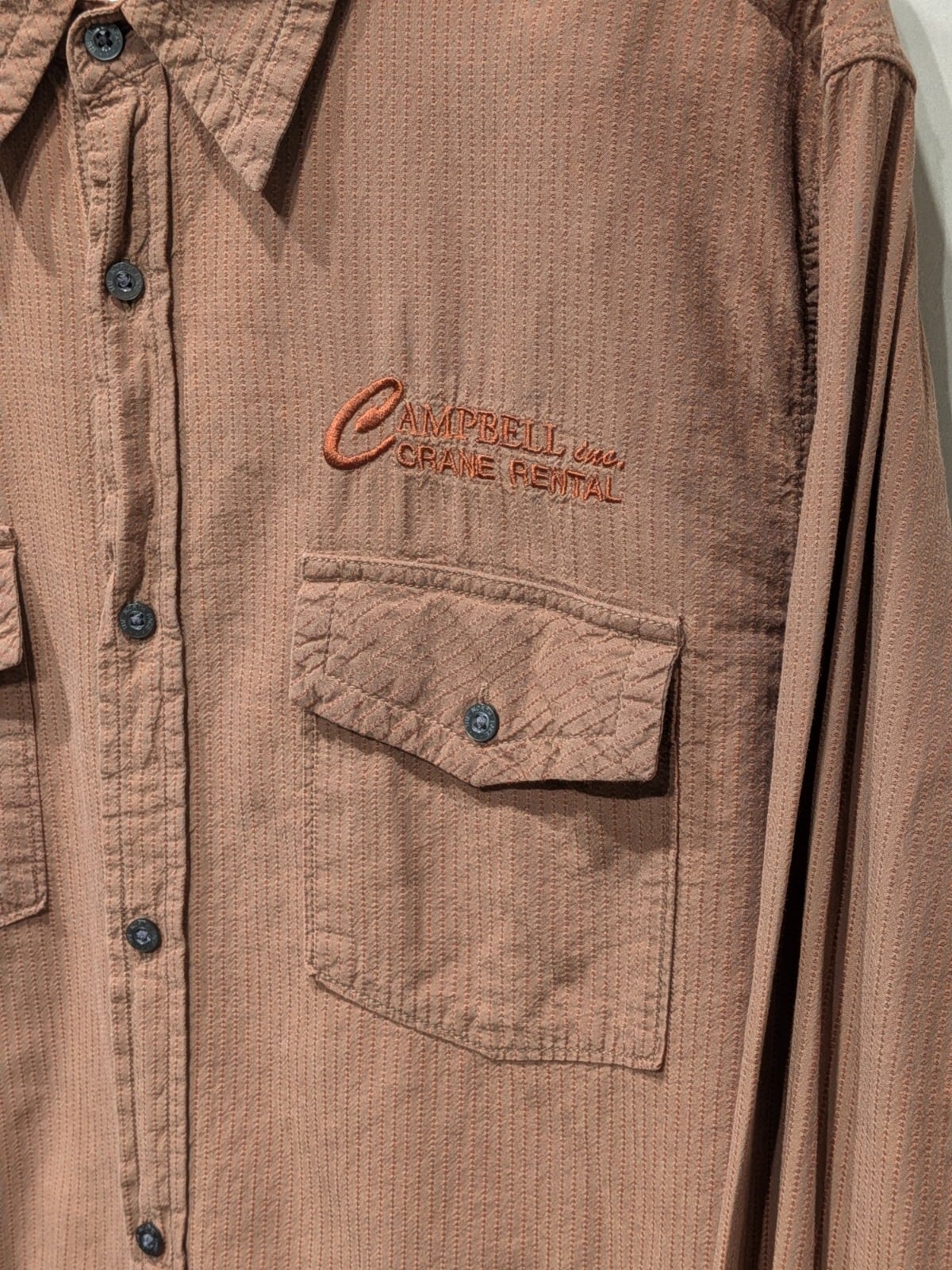 両胸のフラップポケットと刺繍ロゴがアクセントになったデザインです。