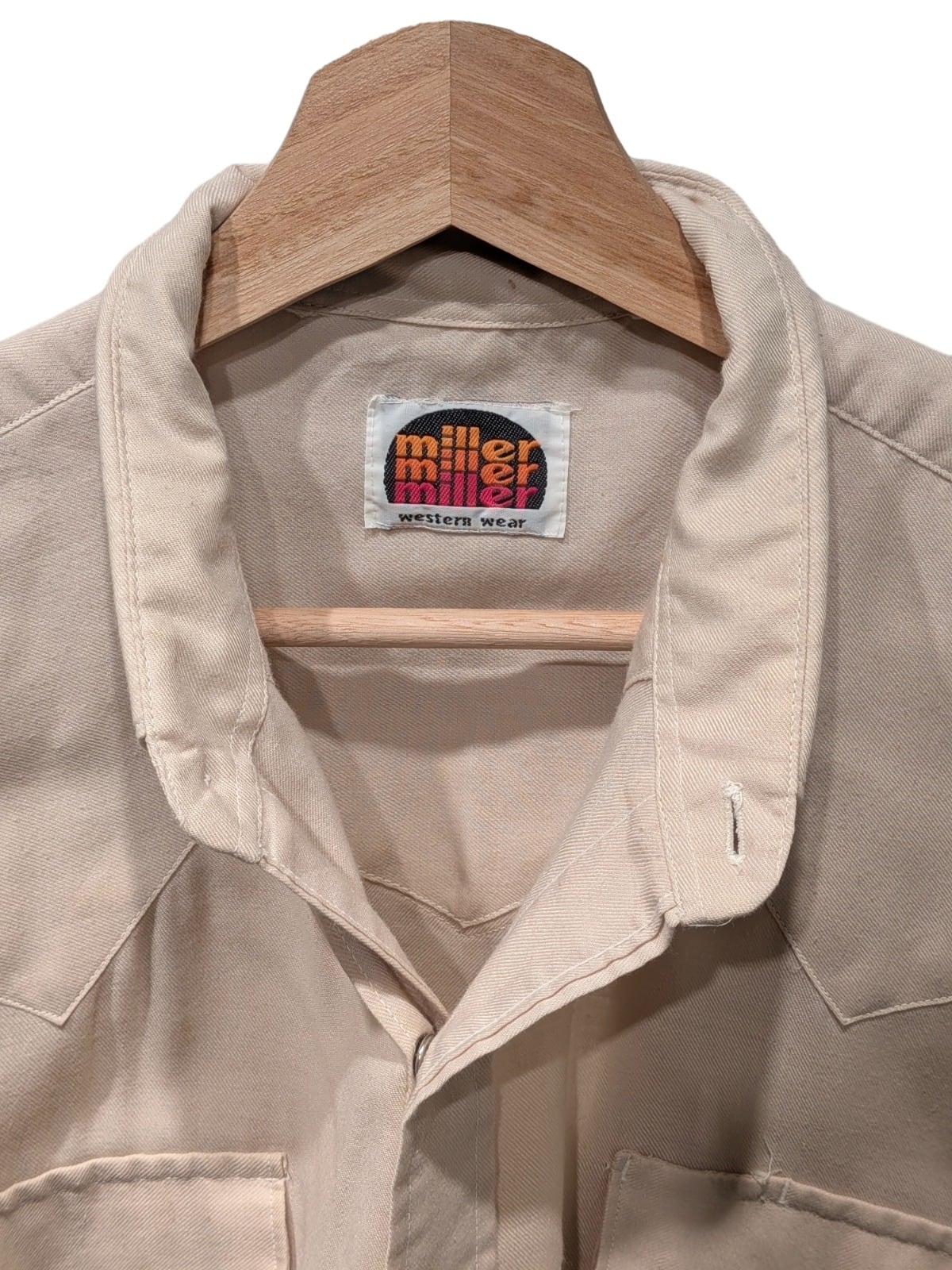 この個体はスナップボタンとフロント・バックに施されたウエスタンヨーク、カーブしたポケットフラップなど典型的なウエスタンディテールを備えた一着です。