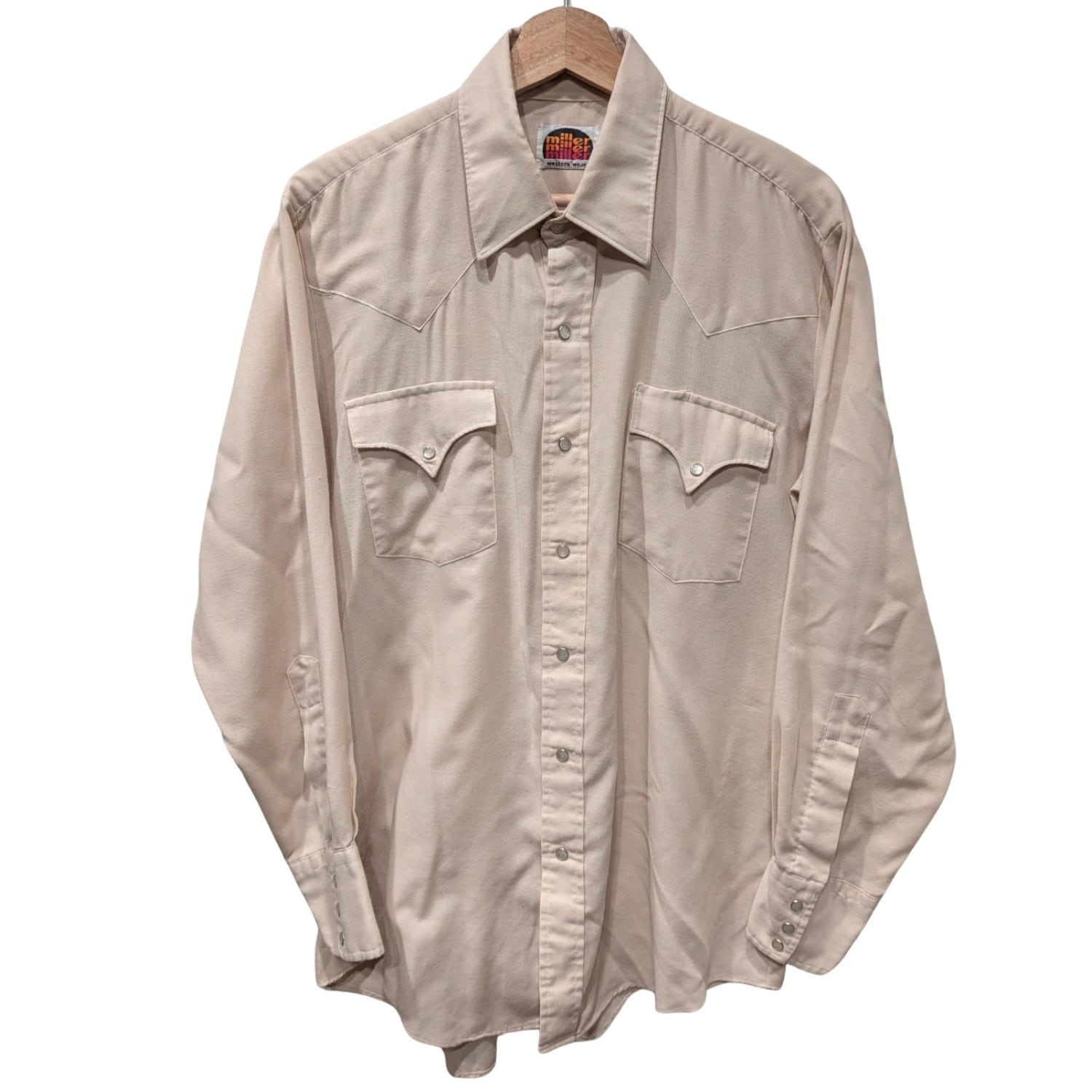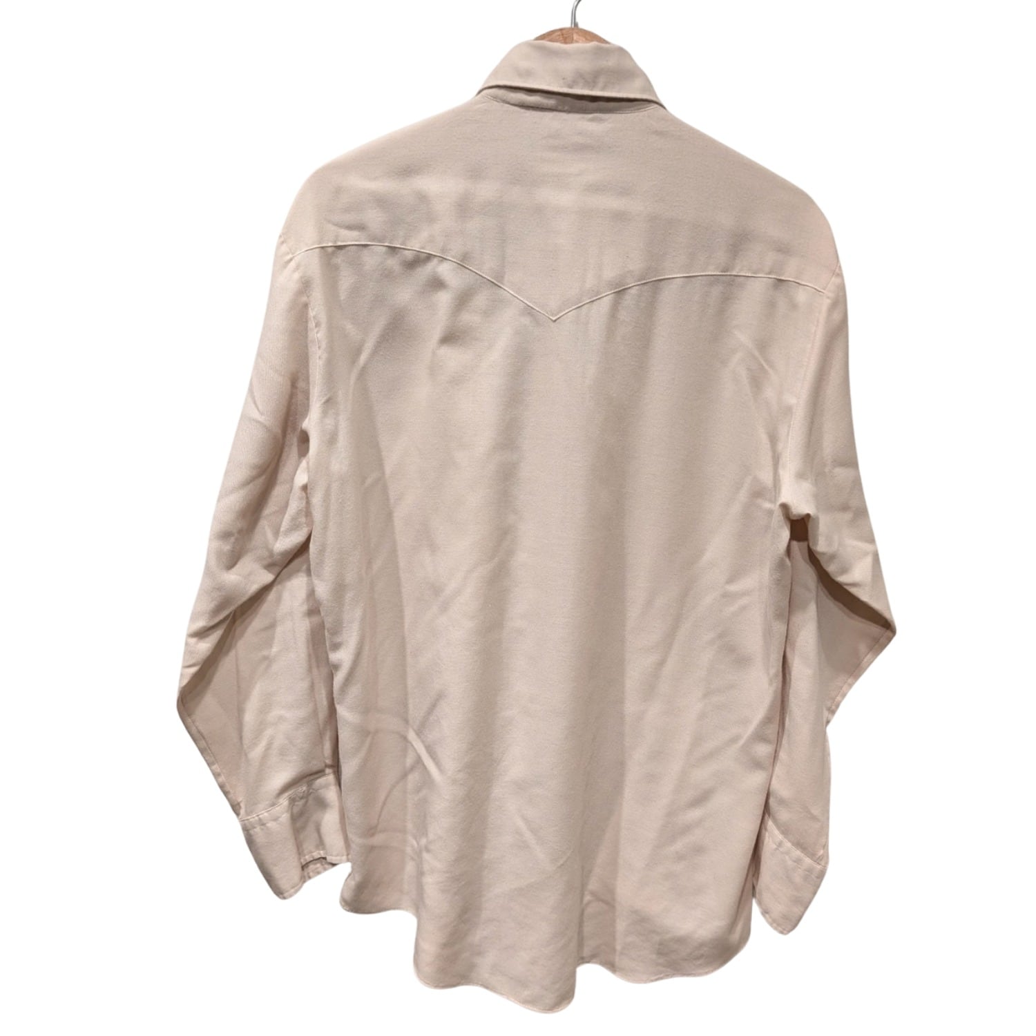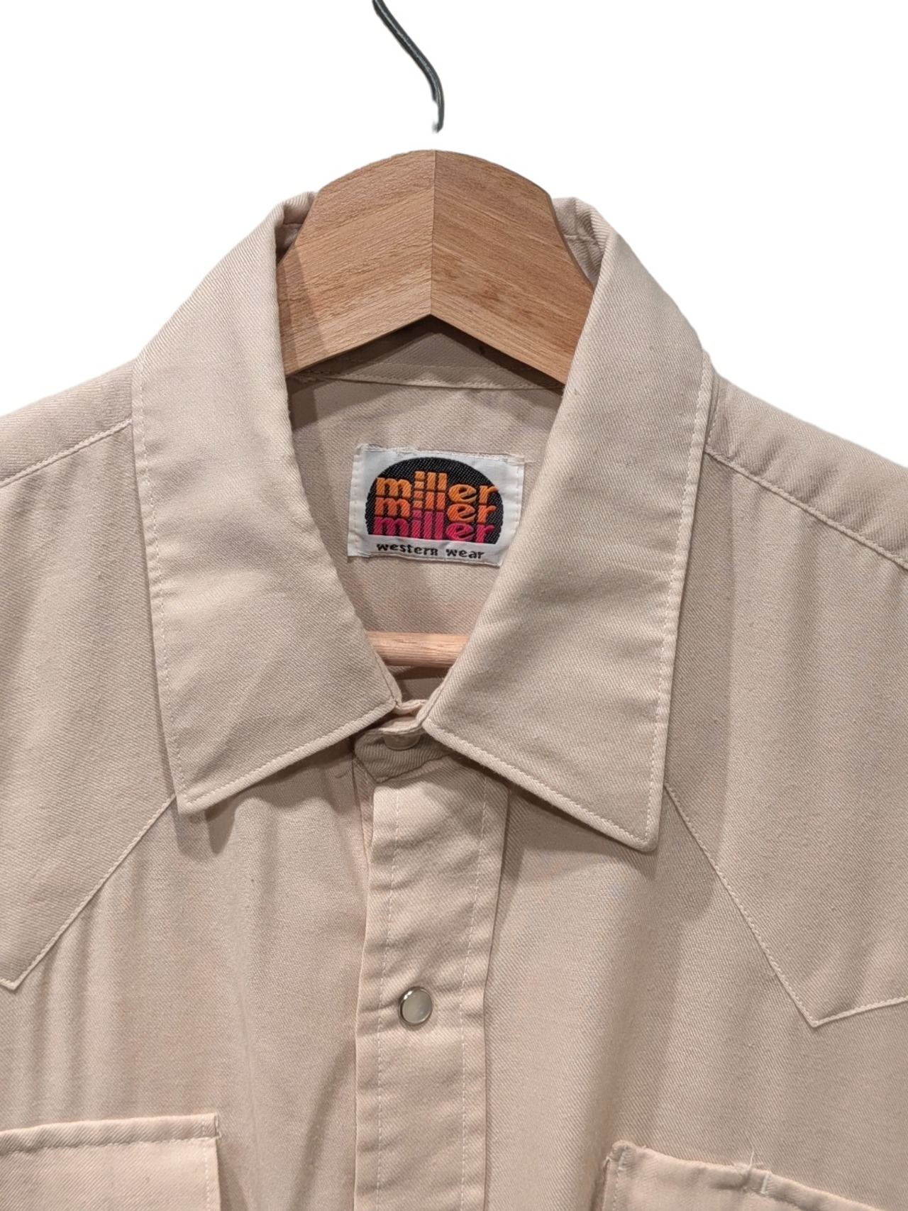 襟はやや大きめで70〜80sのディテールを感じさせる雰囲気。