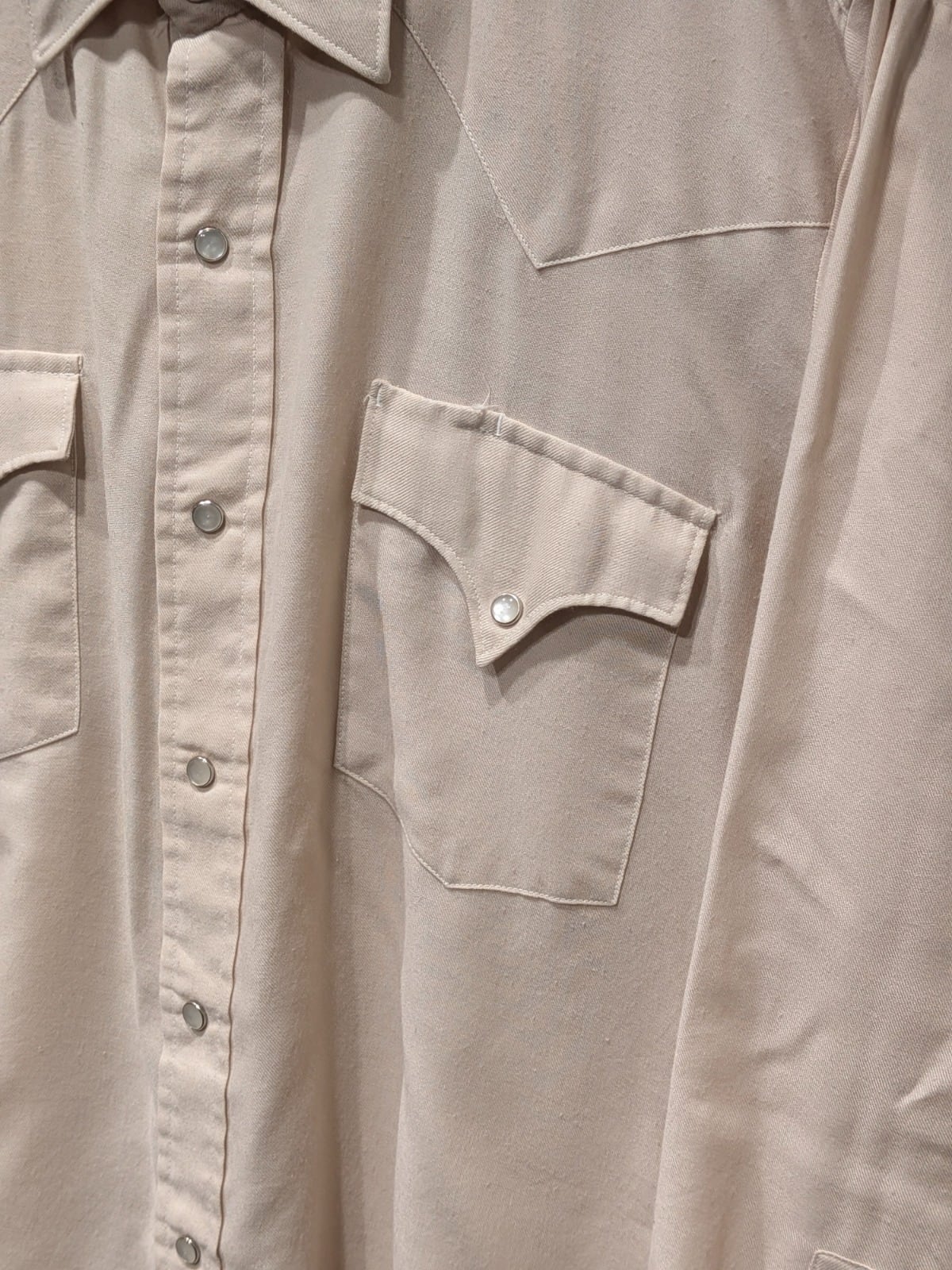 胸ポケットはカーブしたフラップとスナップ留めでウエスタンらしいアクセントになっているのが特徴です。