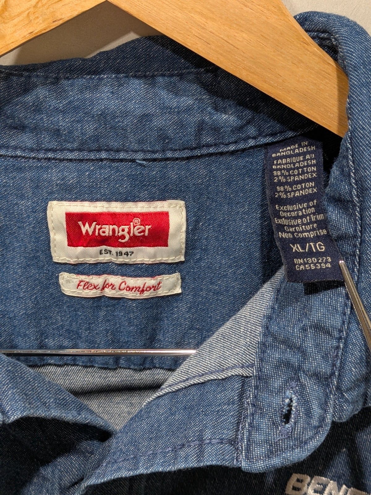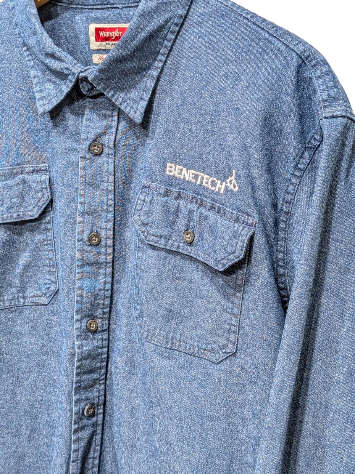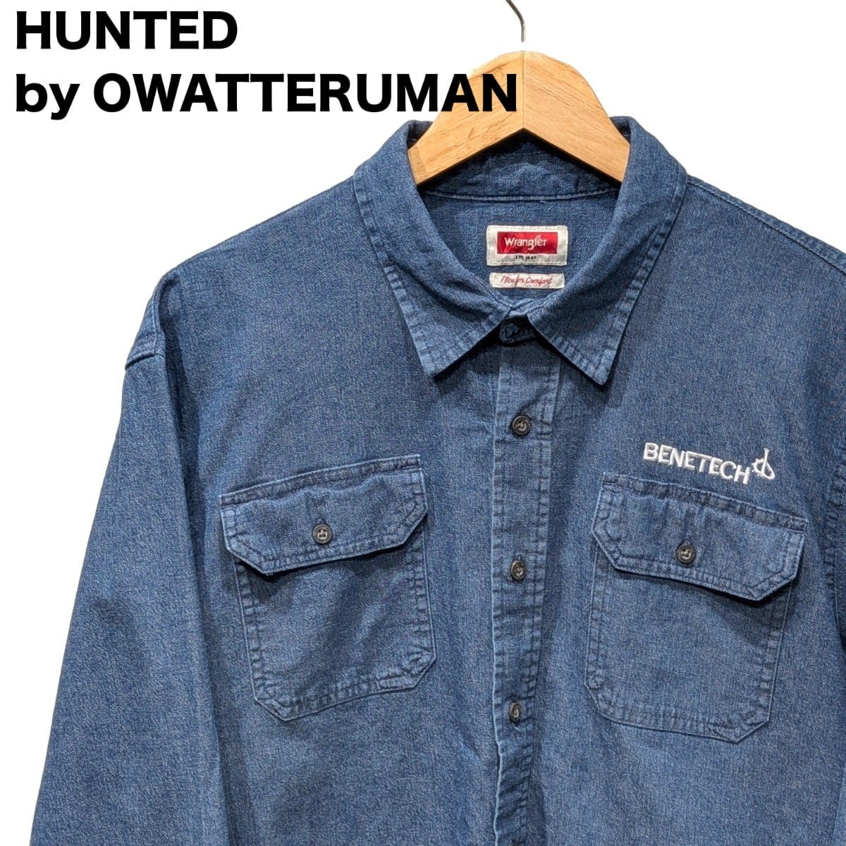 Flex for Comfortタグとストレッチ混紡素材から、動きやすさを重視した現代寄りのワークシャツという立ち位置です。