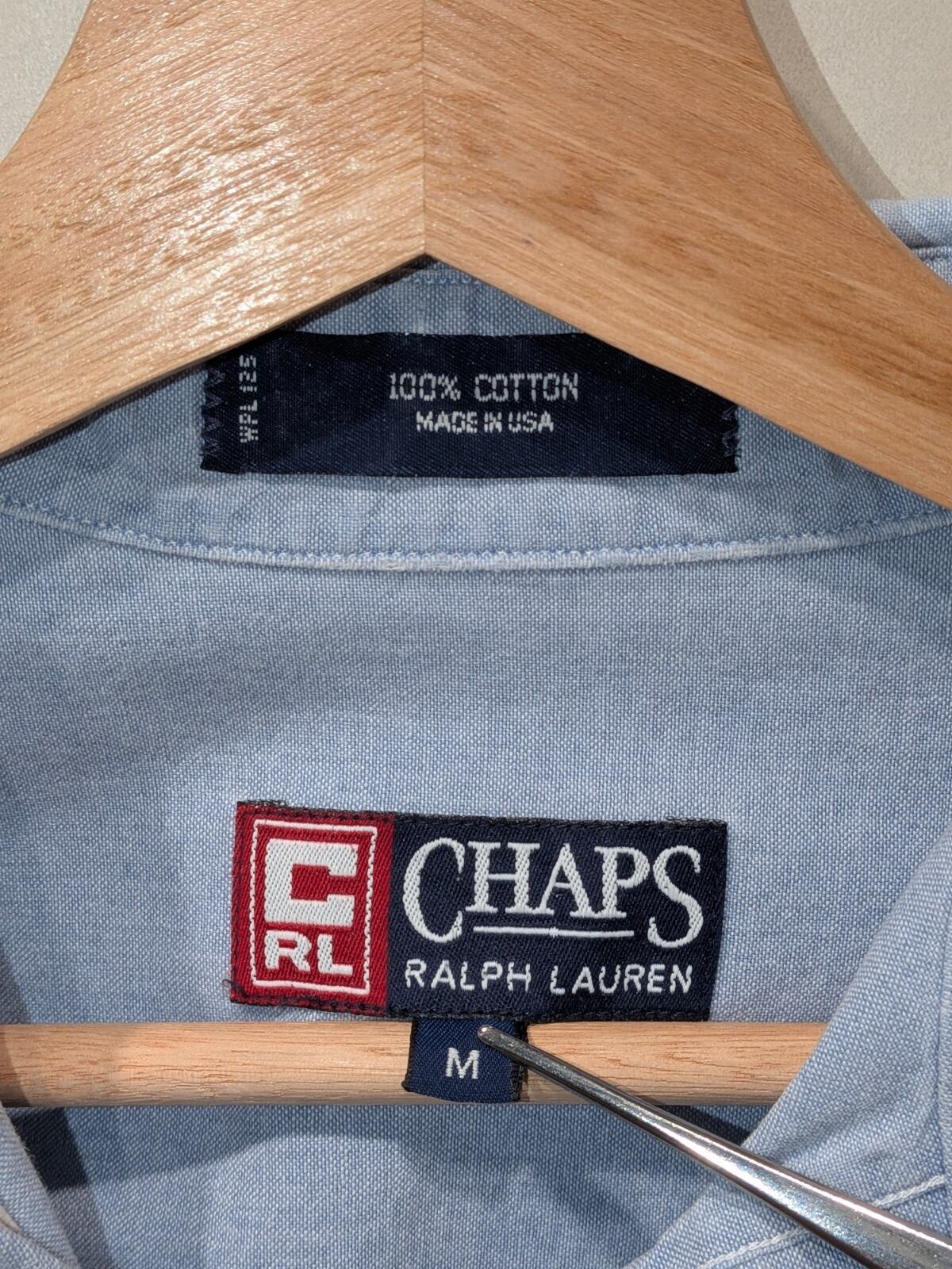 CHAPSのボタンダウンでUSA製表記のある個体は、90sのアメリカンカジュアル/プレッピー寄りの着こなしと親和性が高い一着です。