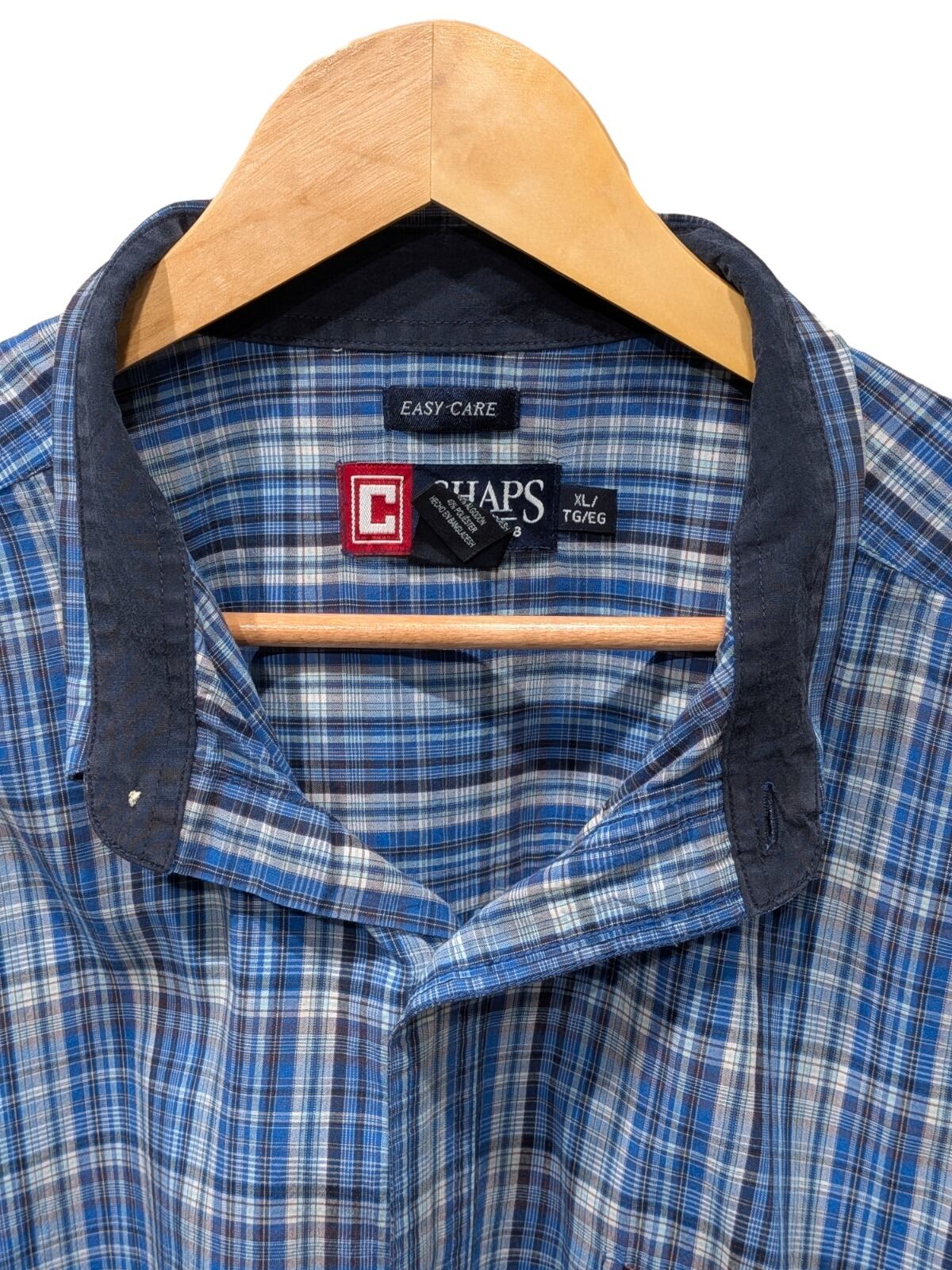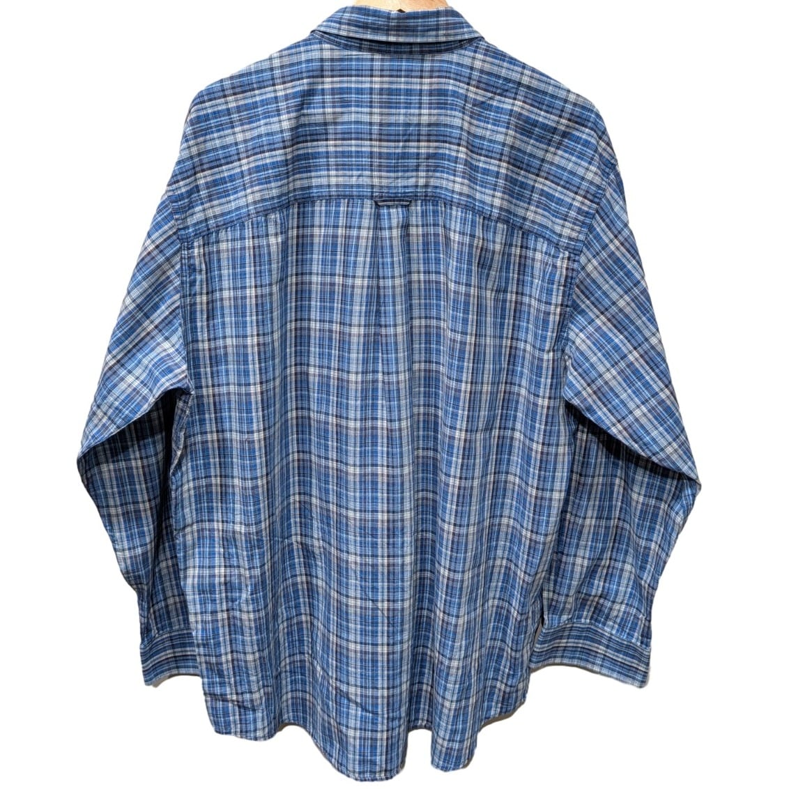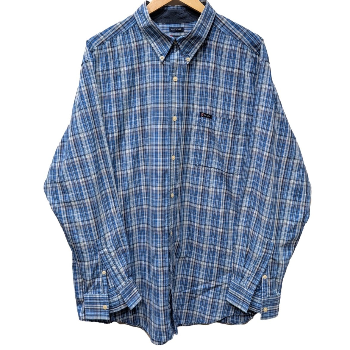 この個体はEASY-CAREラベルと綿×ポリの混紡表記があり、日常使いに寄せた扱いやすさを重視した量産期のシャツという文脈で見ることができます。