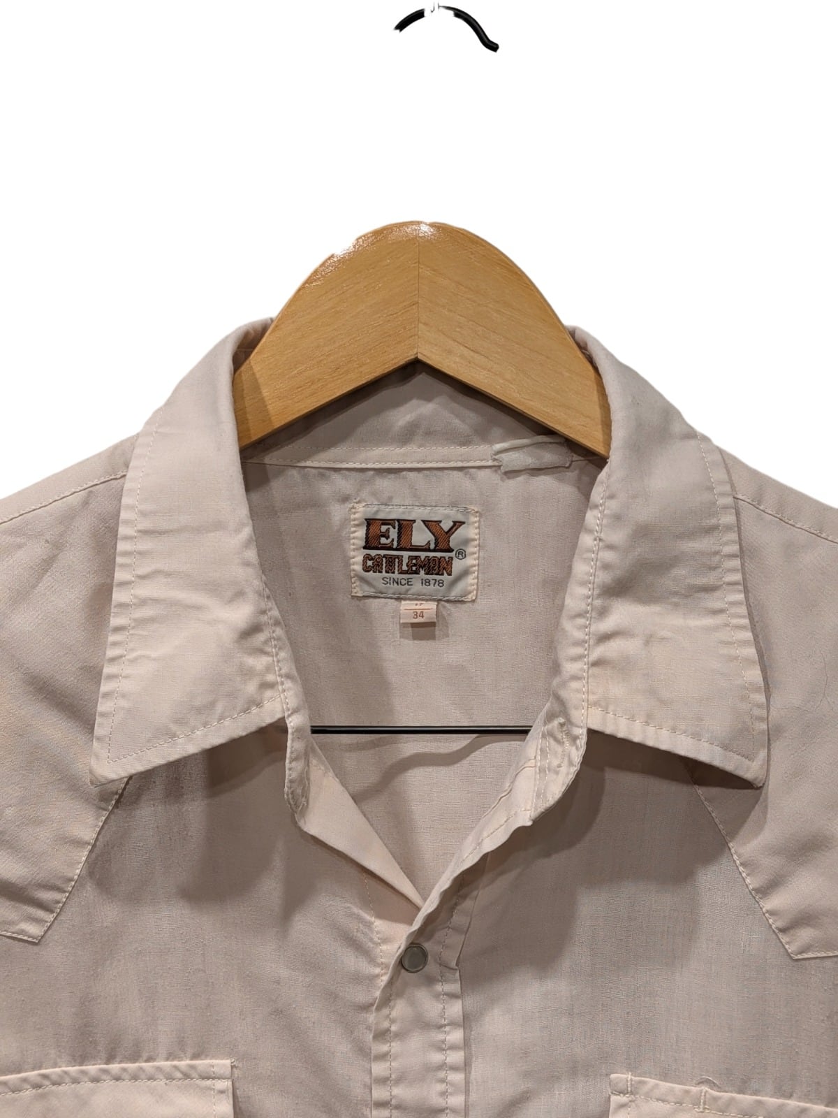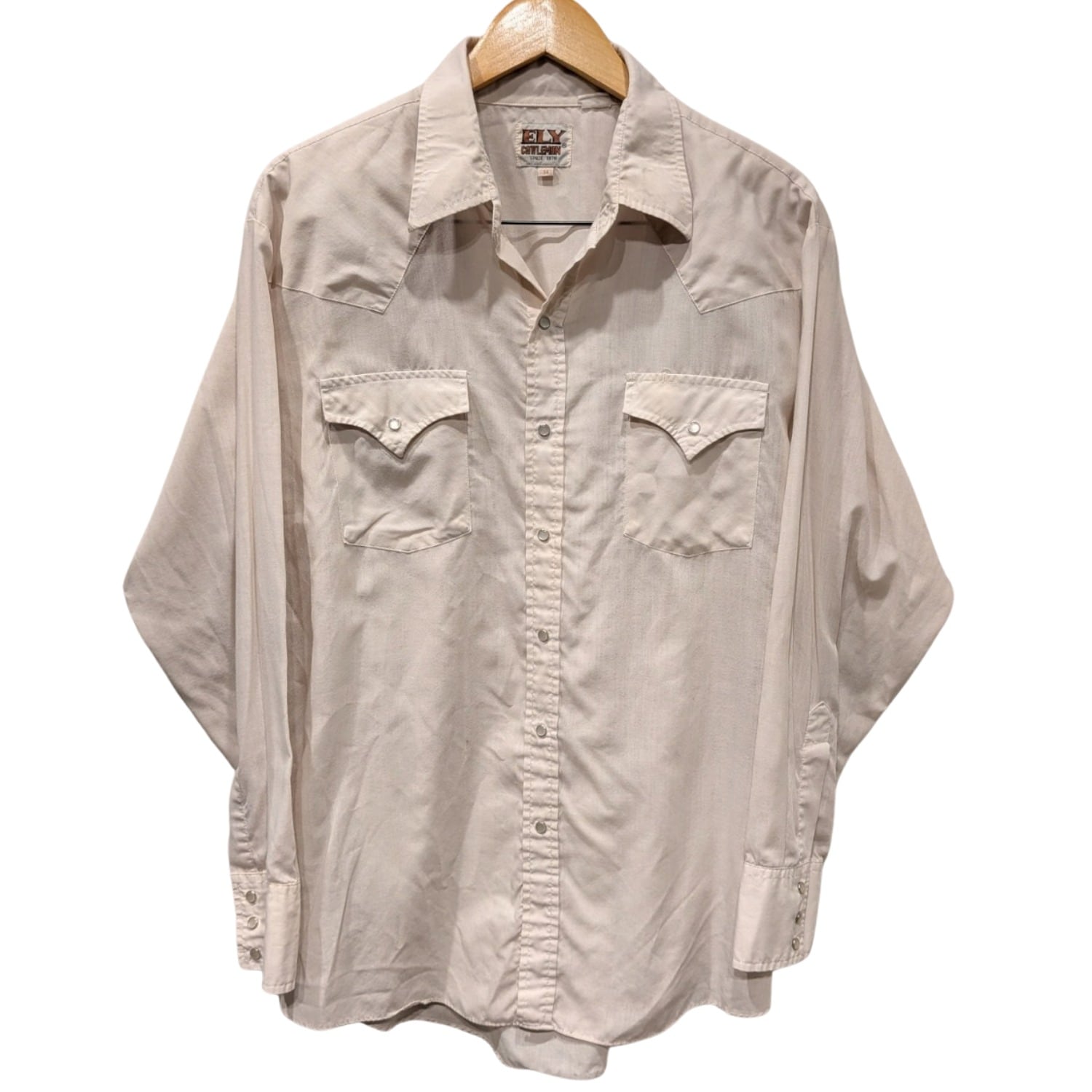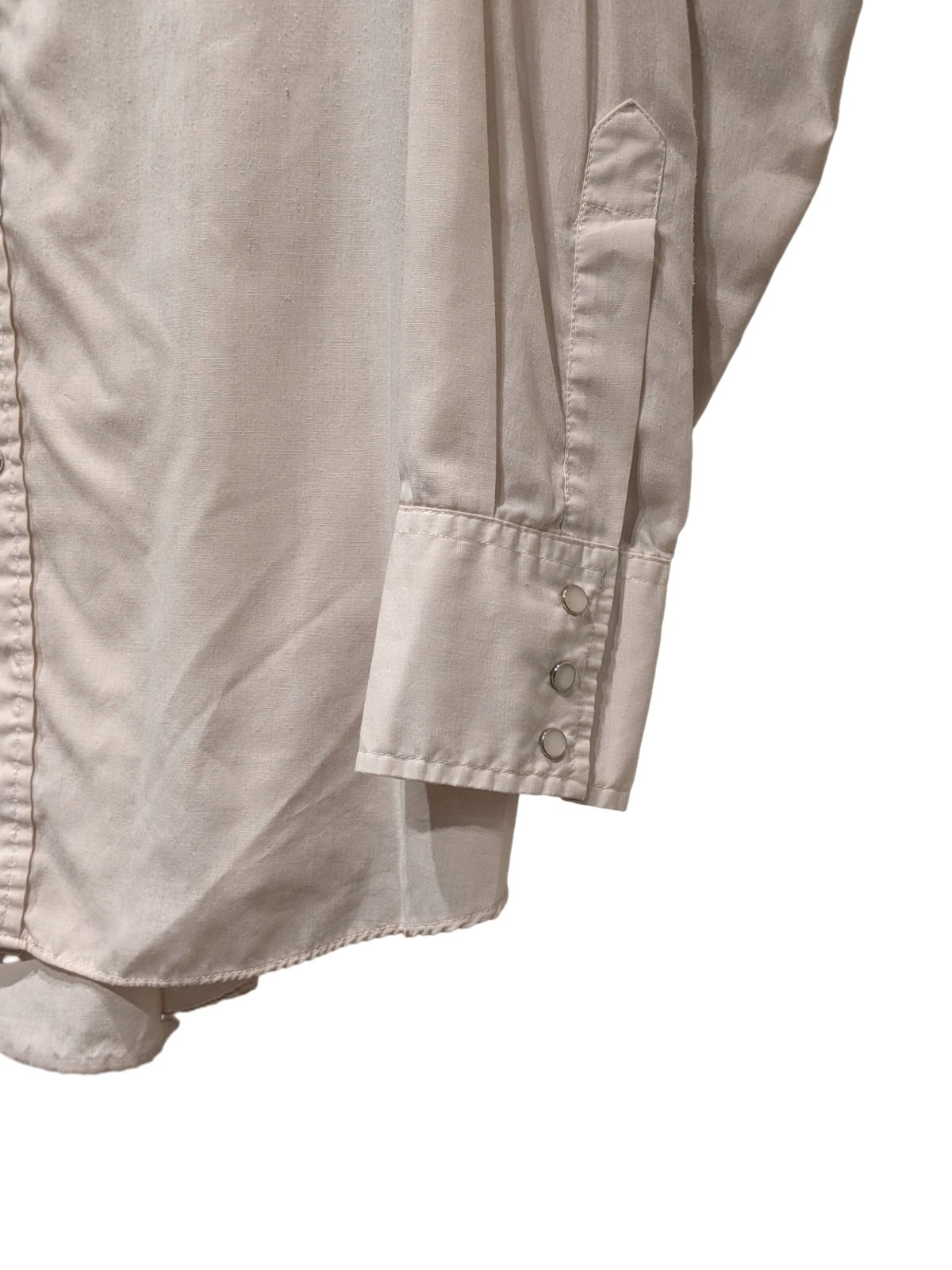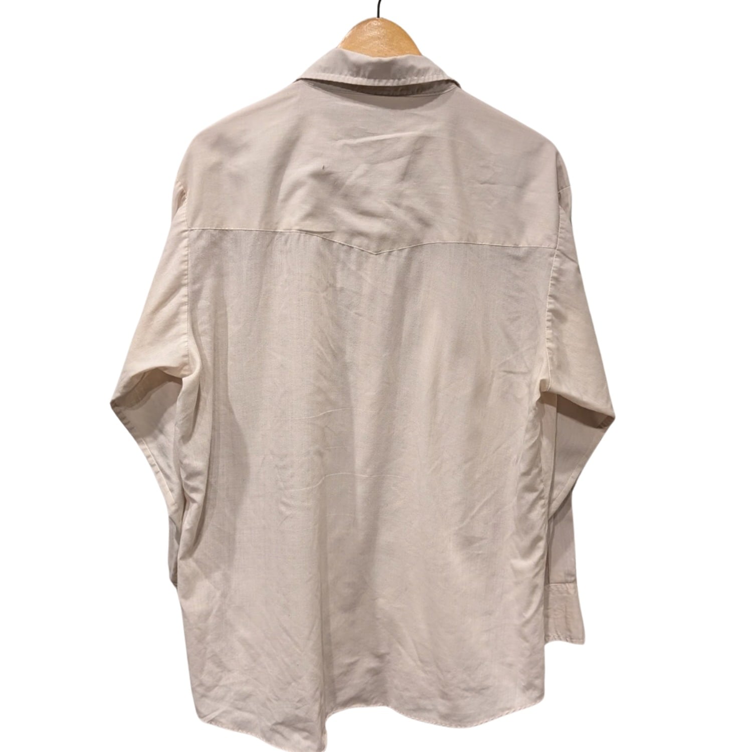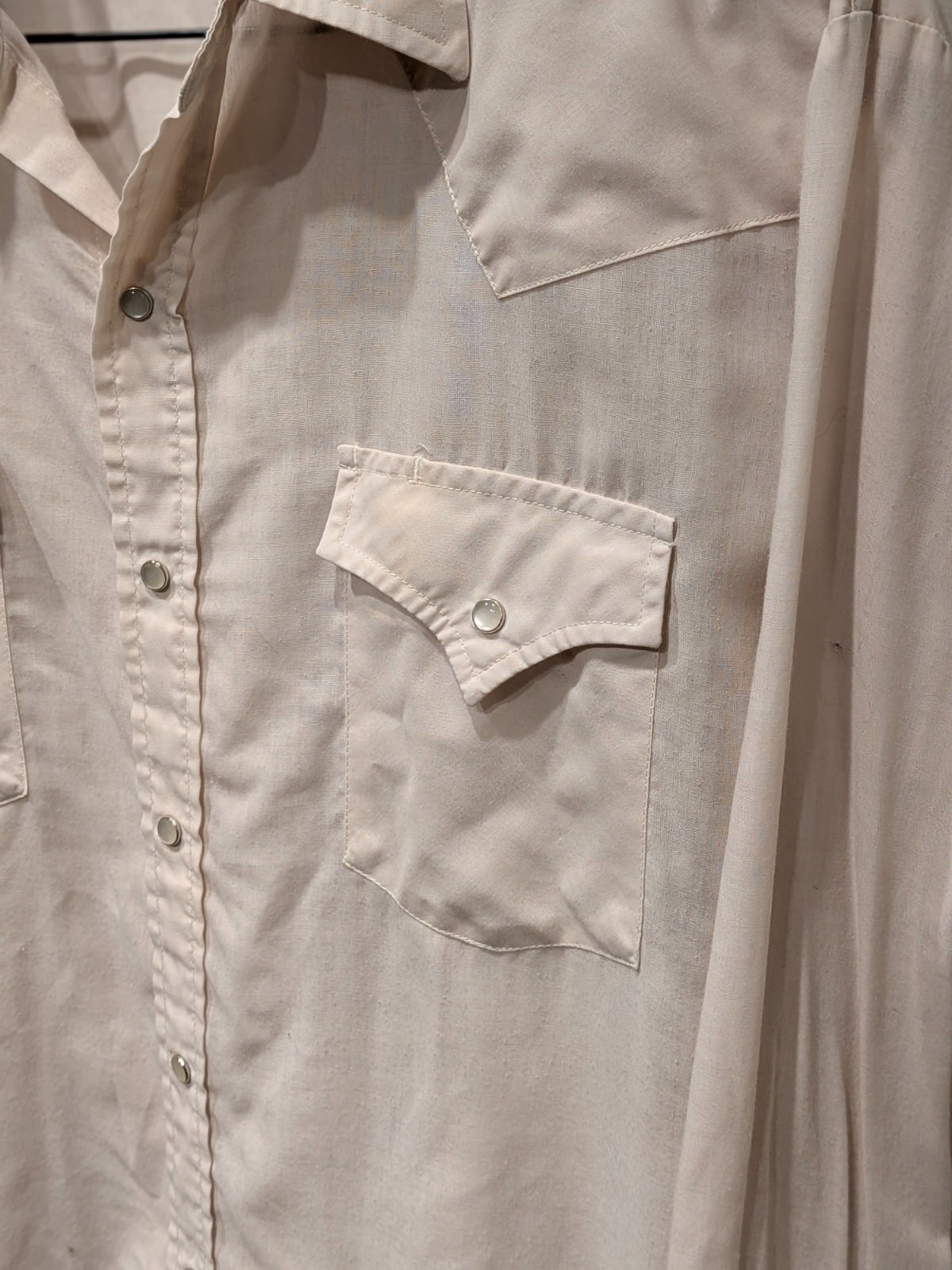 この個体はフラップ付きポケット、ウエスタンヨーク、スナップボタンといった西部由来のディテールを備えており、日常のカジュアルスタイルに馴染む作りになっている。