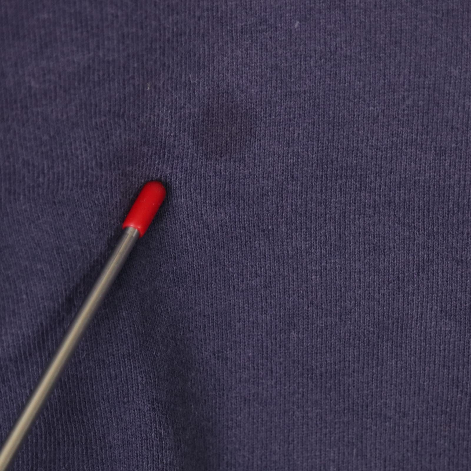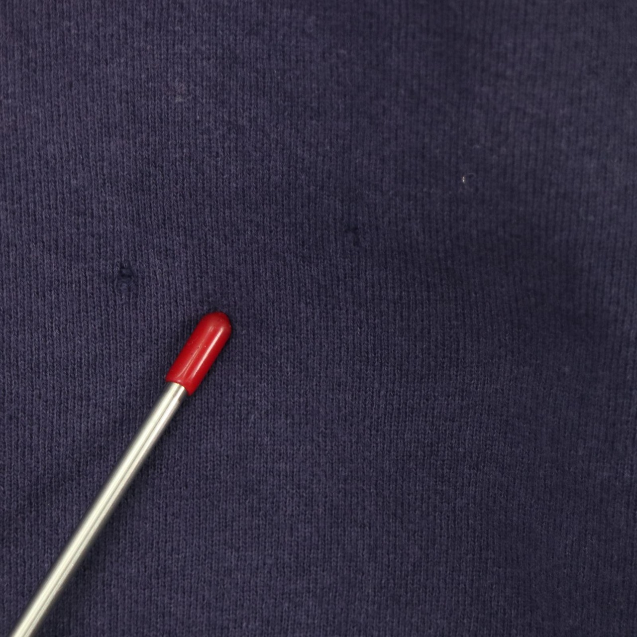 前身頃中央付近に小さな穴があり、右袖にもダメージが見られます。
