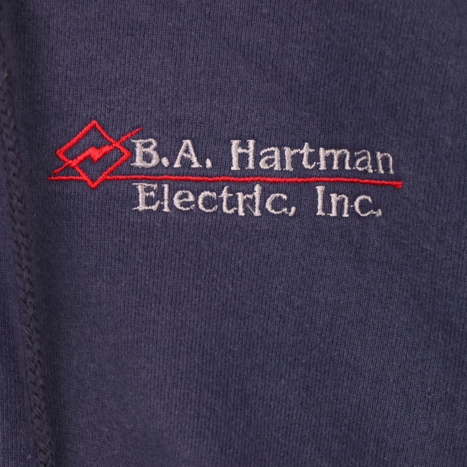 企業ロゴ刺繍と背面に大きな企業プリントが入るワークユースのプルオーバーパーカーです。
