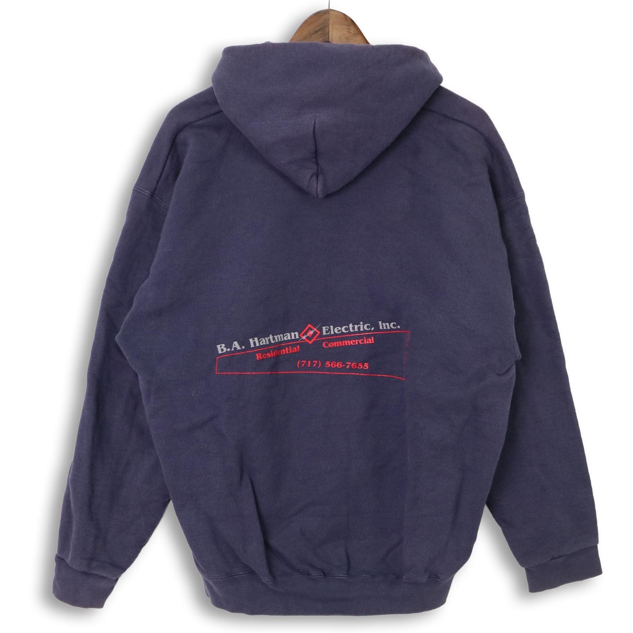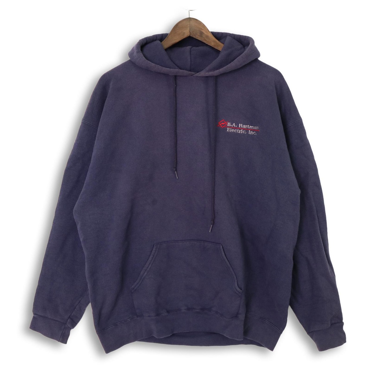 フードはドローコード付きのプルオーバー仕様で、前身頃にカンガルーポケットとリブ裾・リブ袖が備わっています。