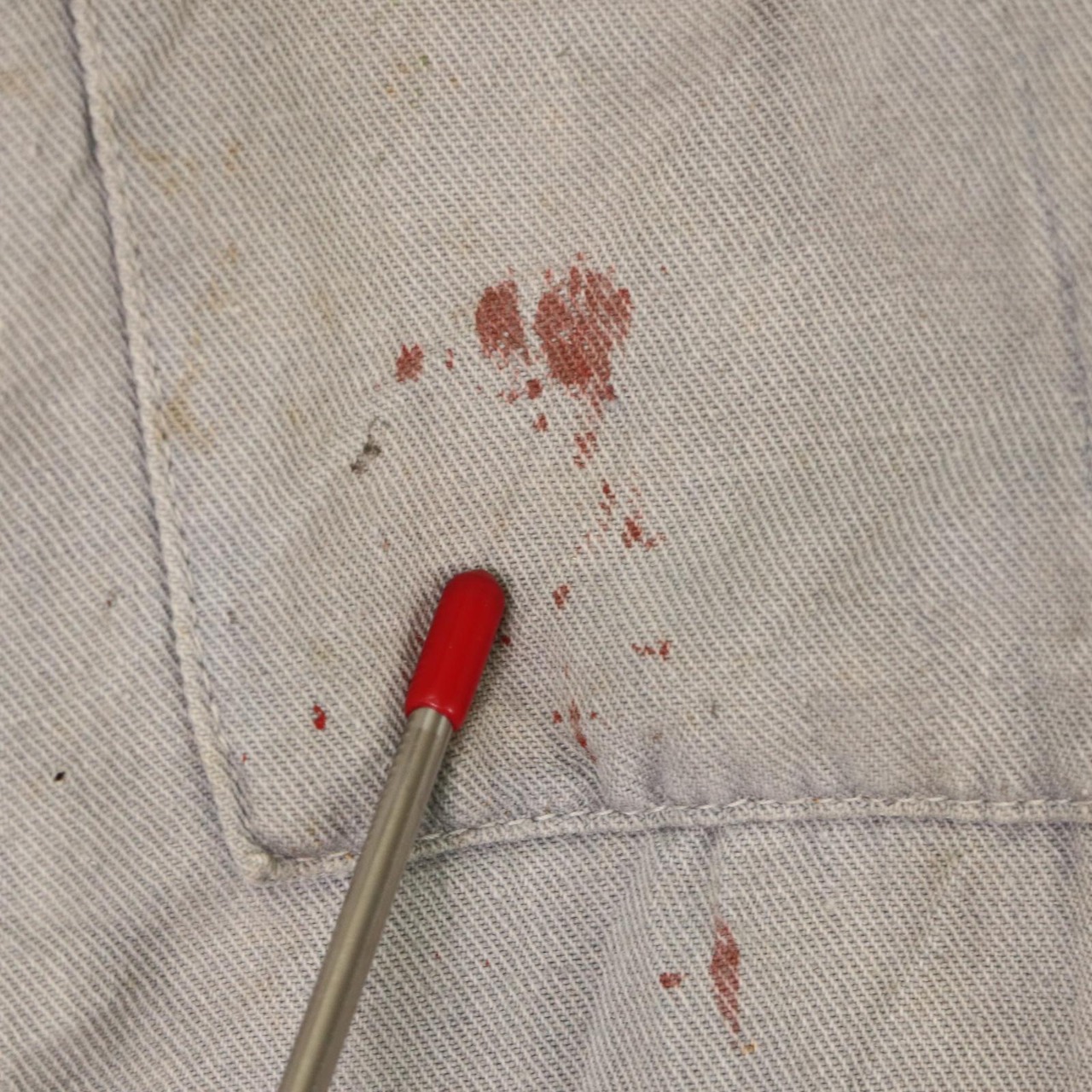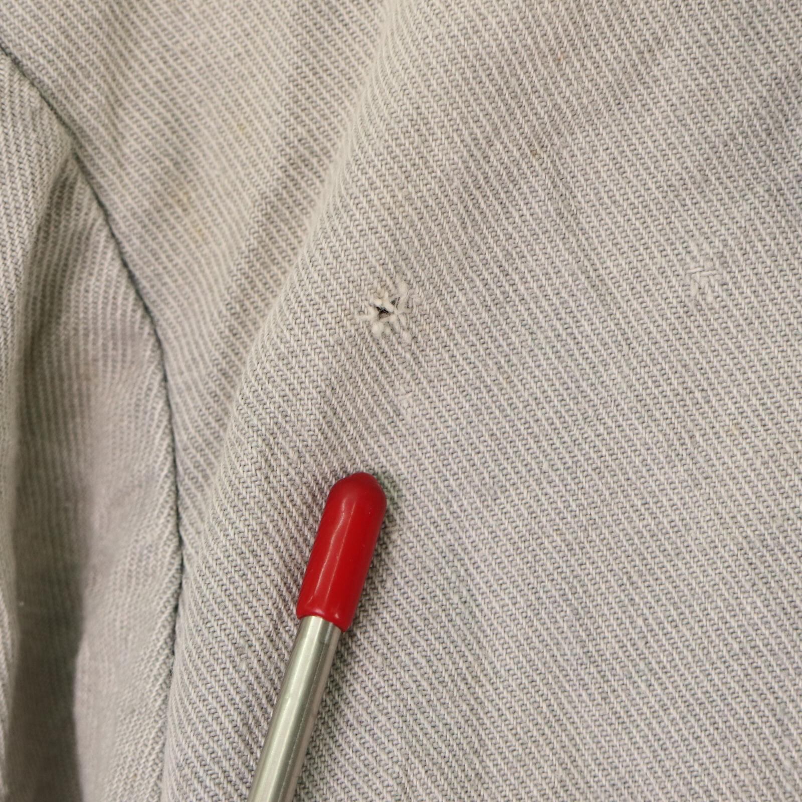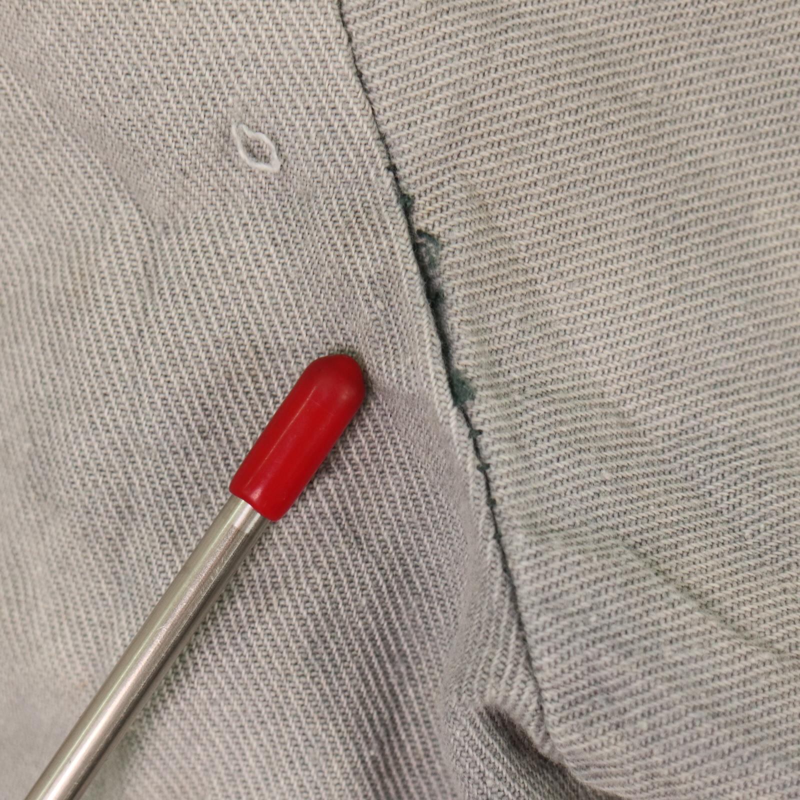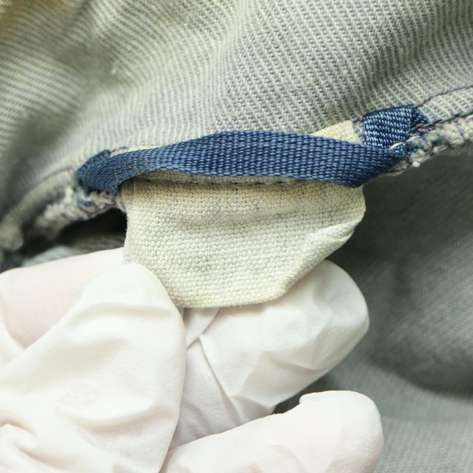 袖口や身頃にペンキ飛びや染み、補修跡が複数見られる点は現状のコンディションとしてご確認ください。