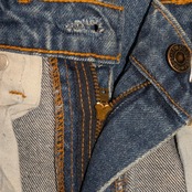 厚手のコットン生地でしっかりした質感があり、経年の色落ちによる自然なアタリが特徴。