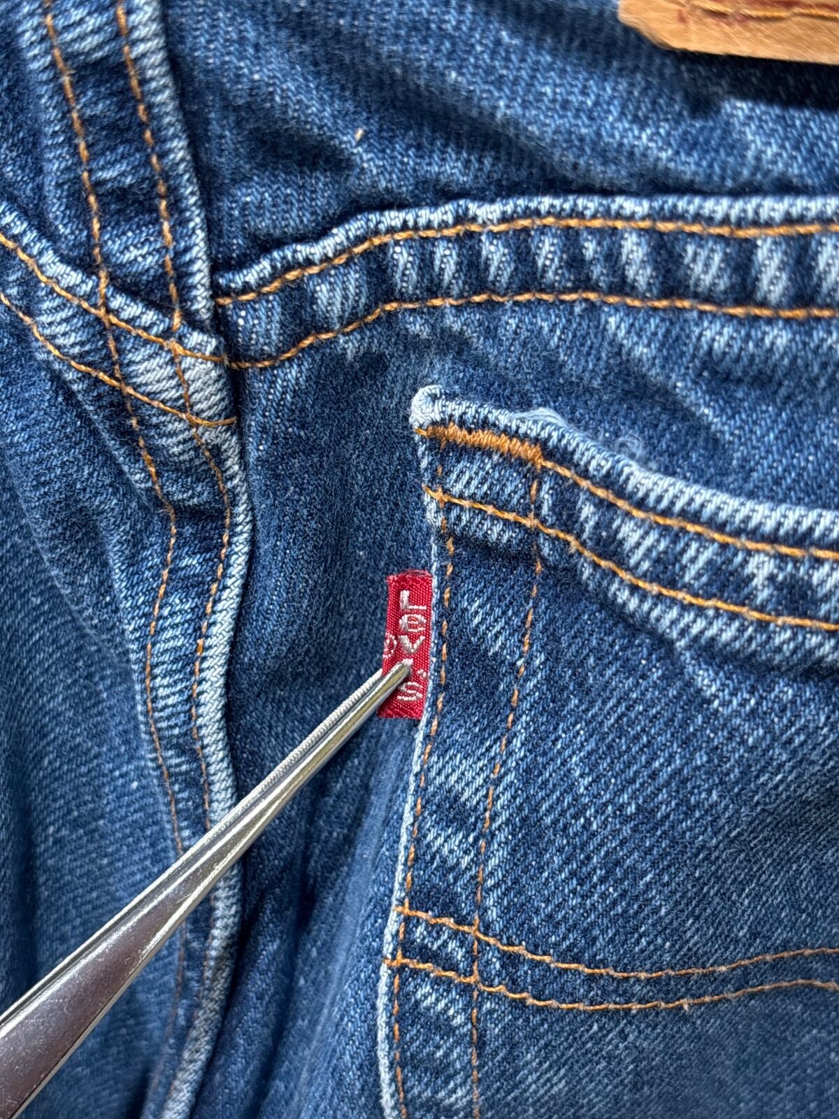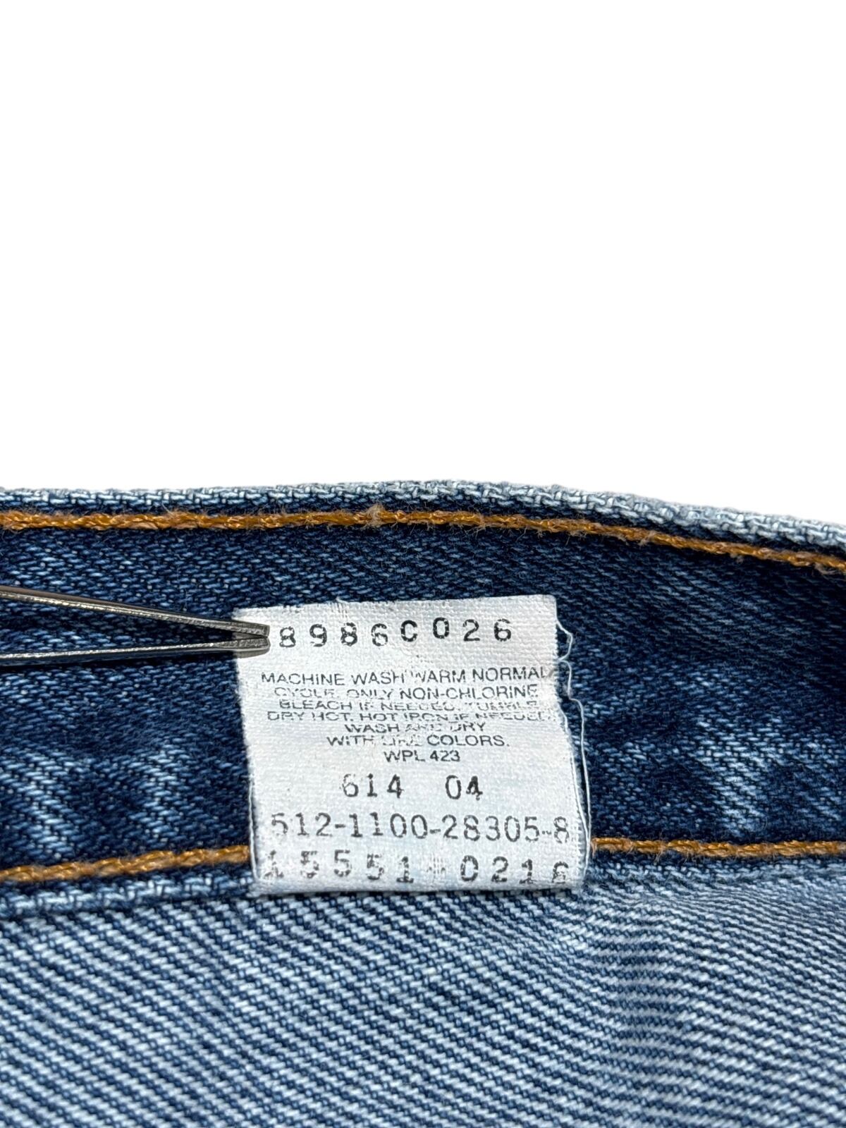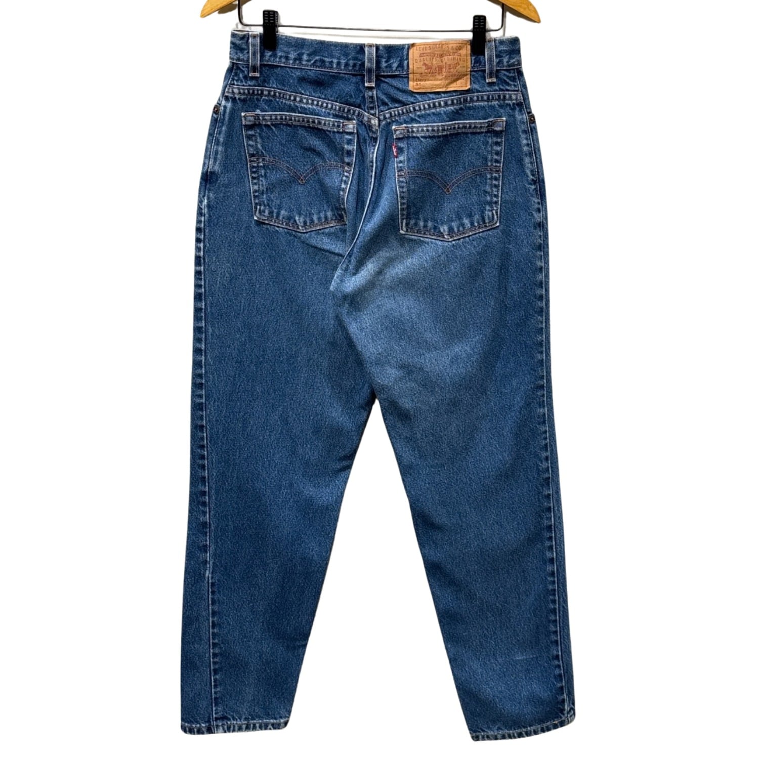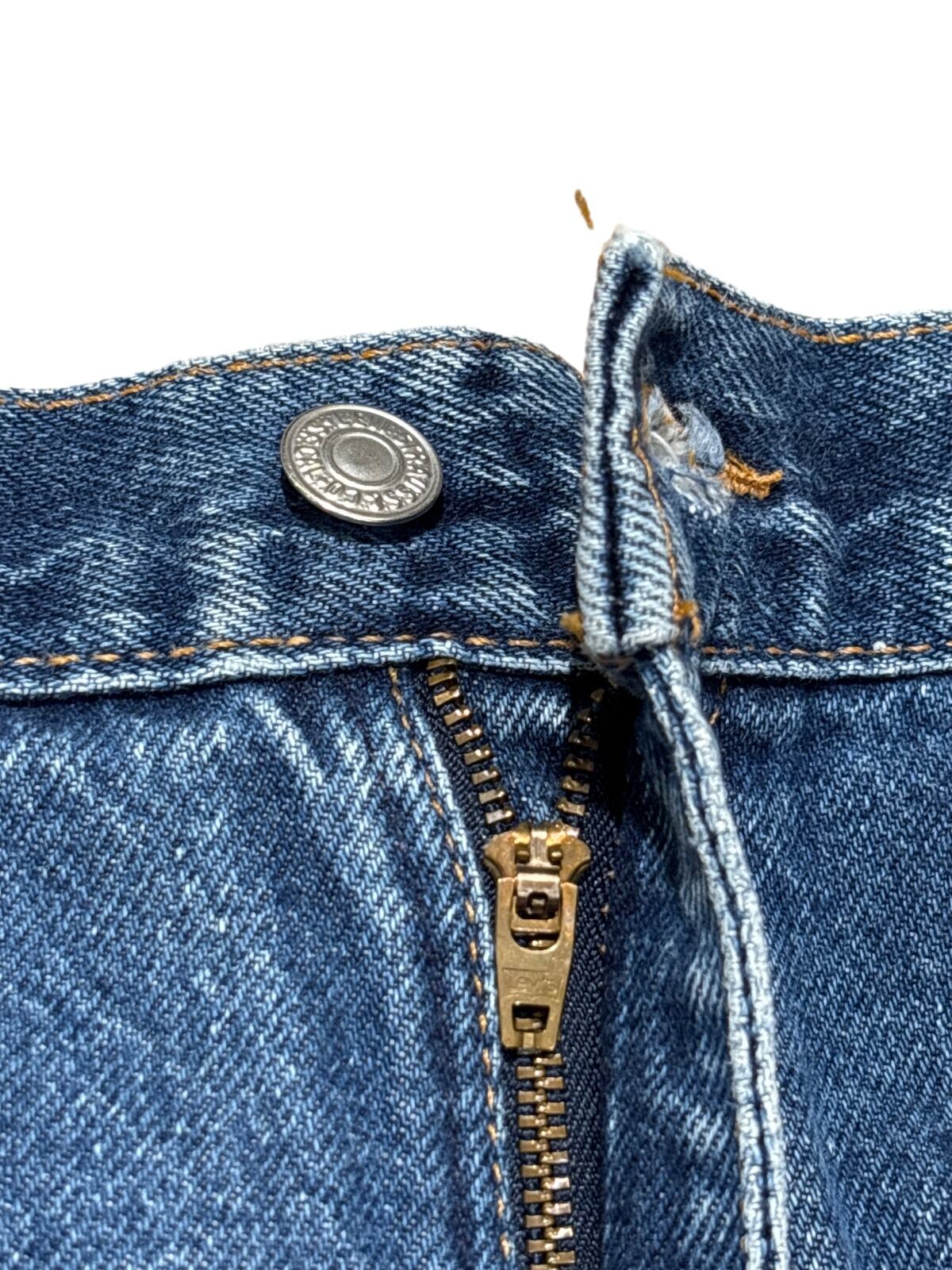 Levi's 550はリラックスフィットにテーパードを掛け合わせた、90sに広く流通したモデルです。内タグの「550」「RELAXED FIT TAPERED LEG」表記と「Made in U.S.A.」表記から、90s期のUSA製ラインの個体と推定しています。ゆったりした腰まわりと裾に向けて細くなるシルエットは、ストリート〜アメカジまで汎用性の高い定番構成です。