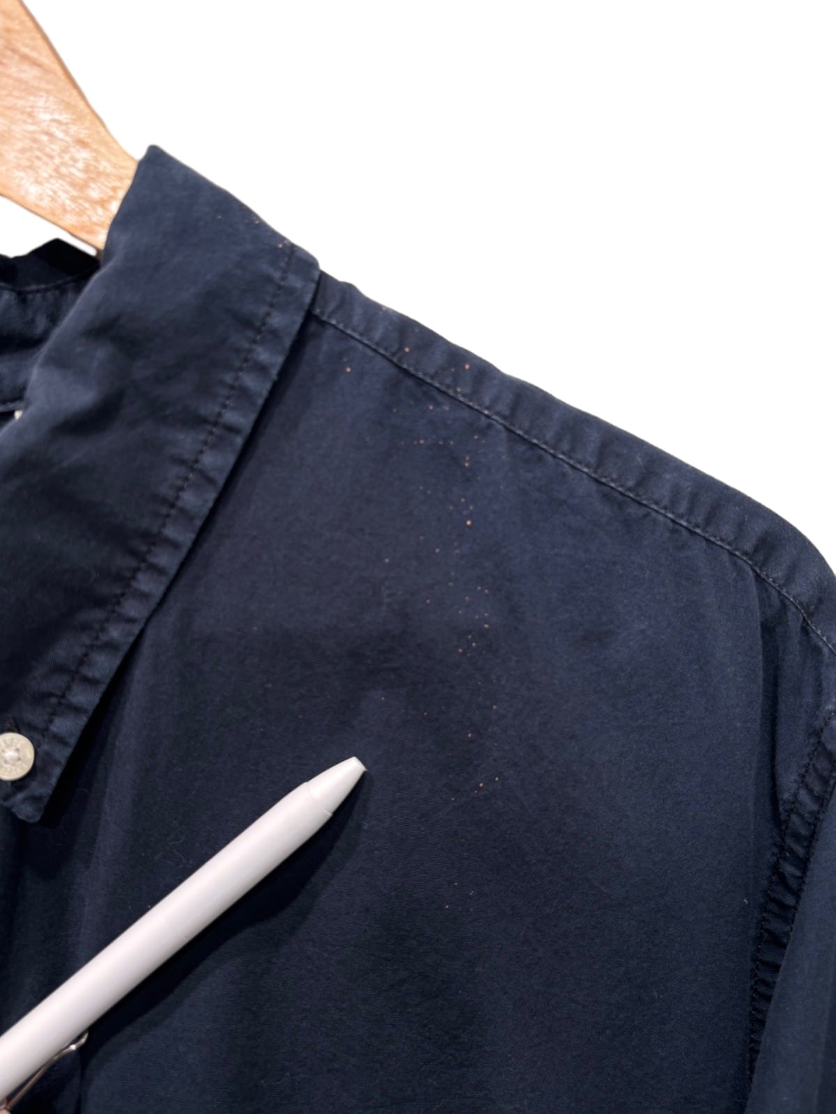 Levi'sのボタンダウンシャツはワークからプレッピーまで幅広く受け入れられてきた定番アイテム。本品は襟内の白タグに赤ロゴ表記(SAN FRANCISCO, CAL.)と隣接する製造表記に「MADE IN MADAGASCAR」、サイズ表記にXXLがあり、これらタグ仕様と量産的な縫製から00s頃の量産期モデルと推定している。胸ポケットと小タブの構成はLevi'sらしいカジュアルユース向けの仕様に沿っている点が特徴。