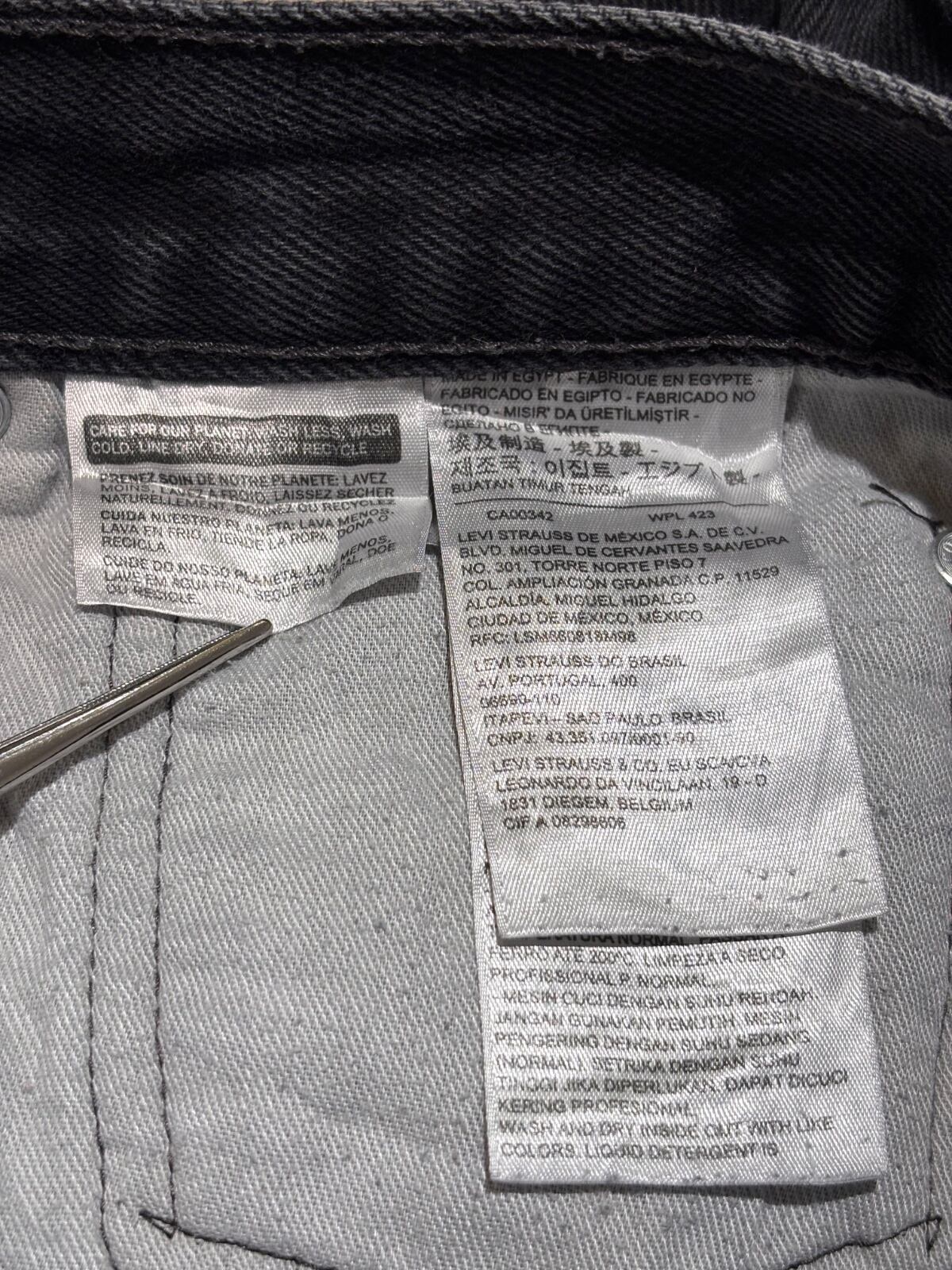 Levi'sのジップフライ仕様のレギュラーストレートは、ワークウェア由来の実用性を残しつつ街着として定着した定番モデル。今回の個体は革パッチにW36 L32表記、赤タブ、メタルボタンとジッパーの組み合わせに加え、内側ケアラベルに「FABRICADO EN EGIPTO」表記が確認できるため、90sと推定されるプロダクションレンジに該当します。使い込まれた表情やペイント飛びはワーク感を強め、カジュアルな着こなしにハマる一本です。