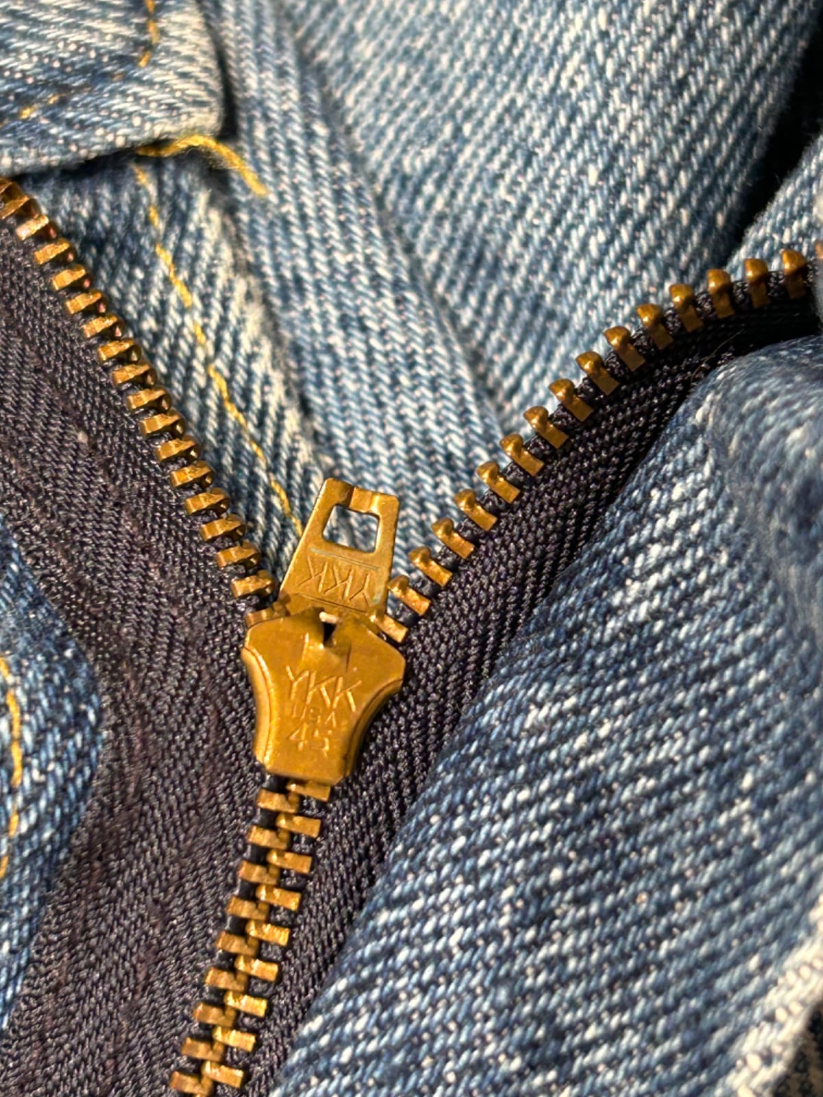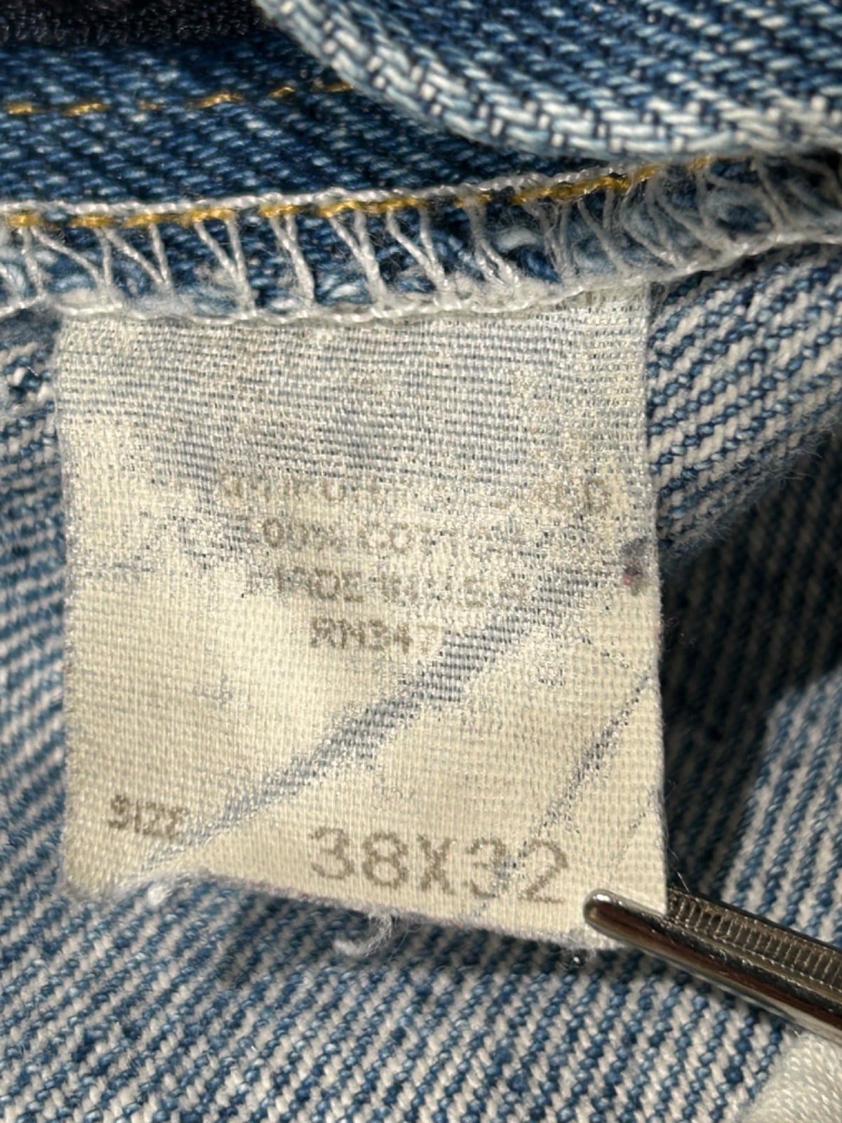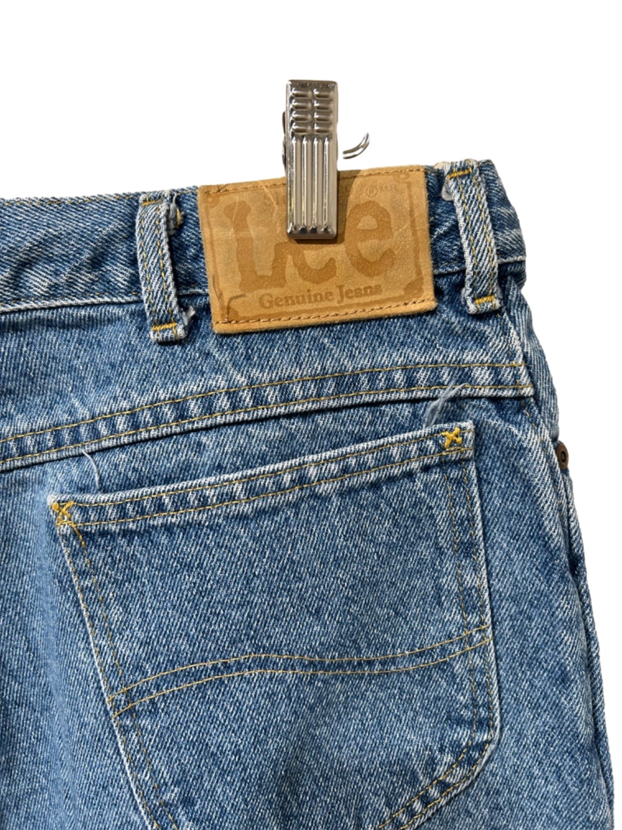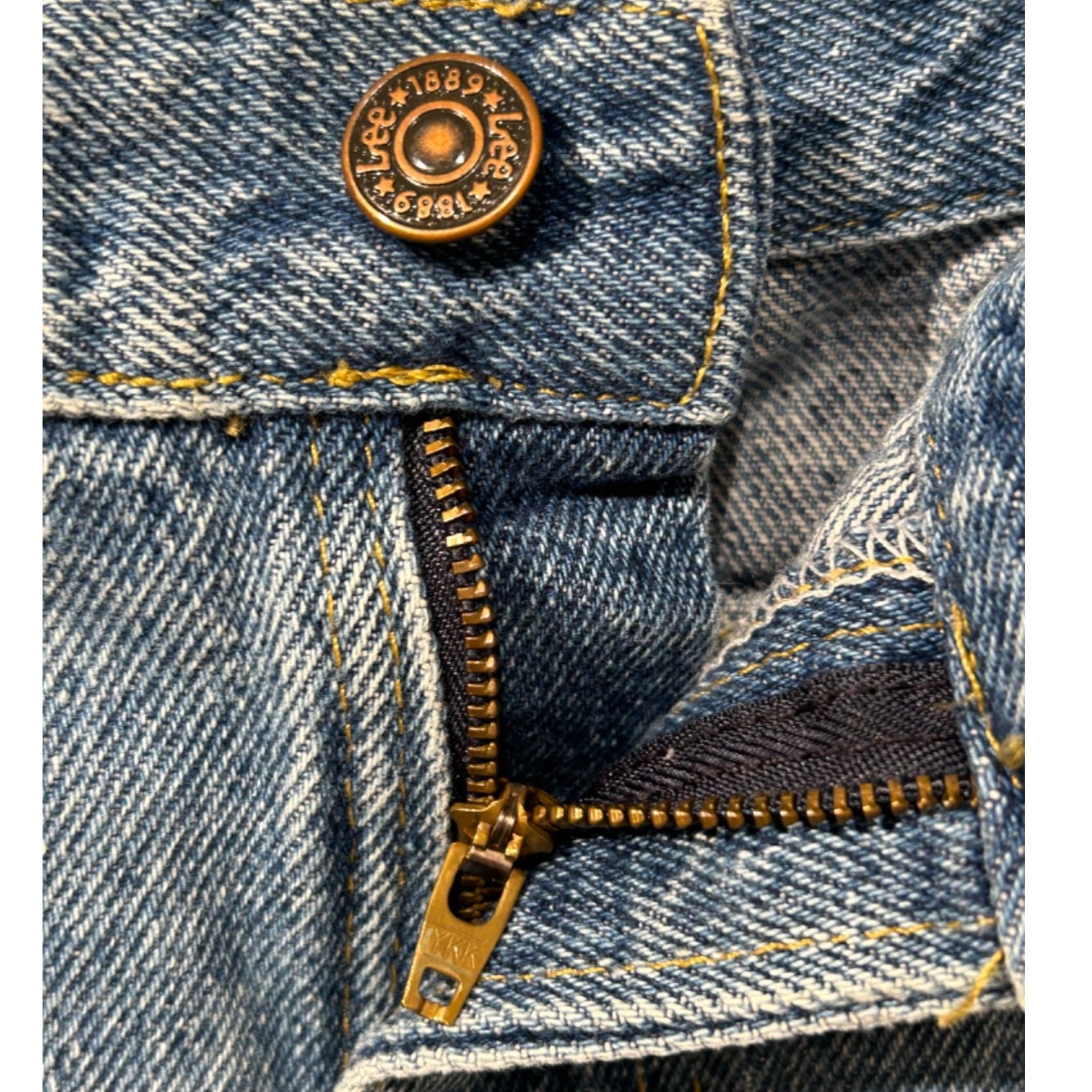 Leeの市販ラインの中堅モデルとして使われてきたデニム。内側のサイズ表記に「38x32」がある点、金属製のYKKジッパー、そして腰後ろの革パッチに"Lee Genuine Jeans"表記がある点を根拠に、90s頃の量産仕様の流れを汲む個体と推定しています。生産国表記は読み取れず確定できないため、海外量産期の標準的な仕様感を持つ一本、という扱いが妥当です。