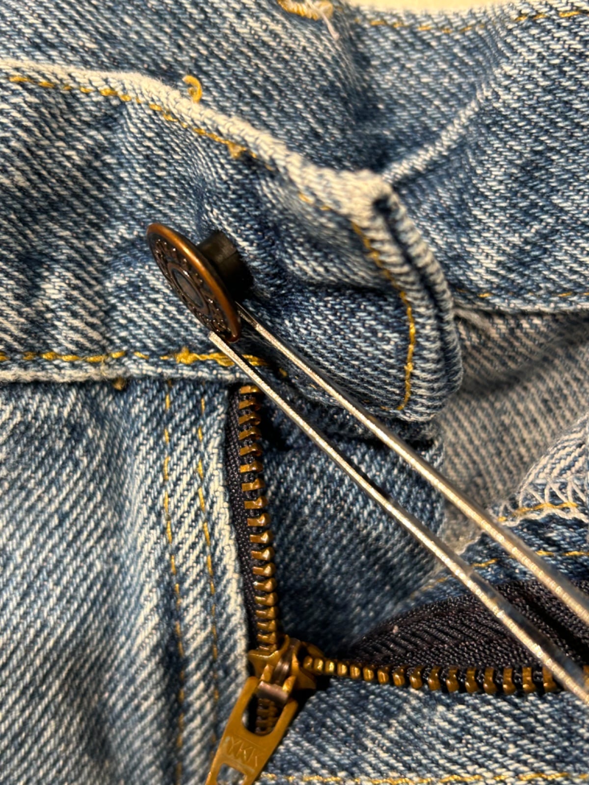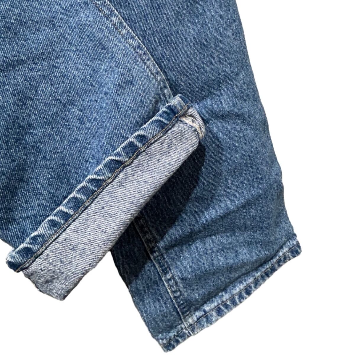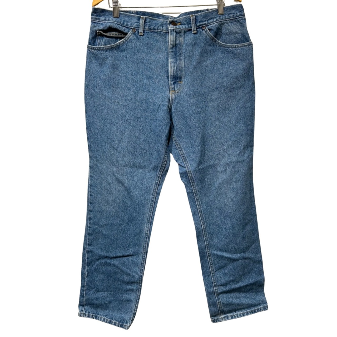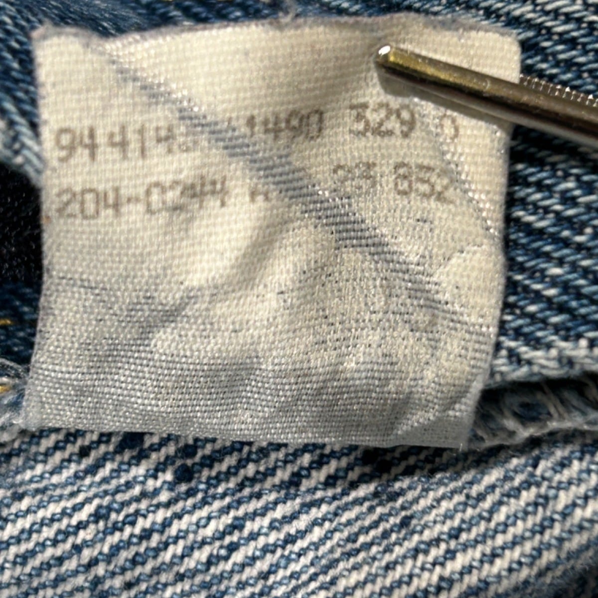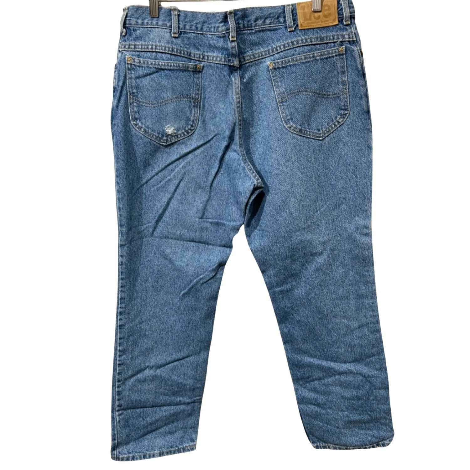 Leeの市販ラインの中堅モデルとして使われてきたデニム。内側のサイズ表記に「38x32」がある点、金属製のYKKジッパー、そして腰後ろの革パッチに"Lee Genuine Jeans"表記がある点を根拠に、90s頃の量産仕様の流れを汲む個体と推定しています。生産国表記は読み取れず確定できないため、海外量産期の標準的な仕様感を持つ一本、という扱いが妥当です。