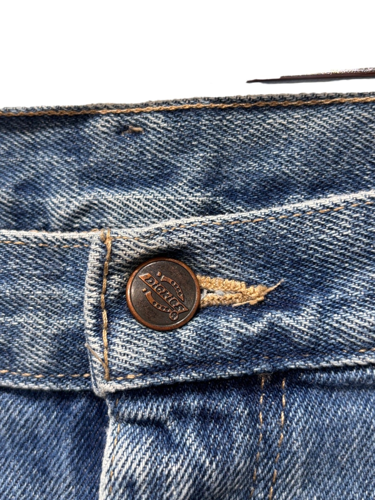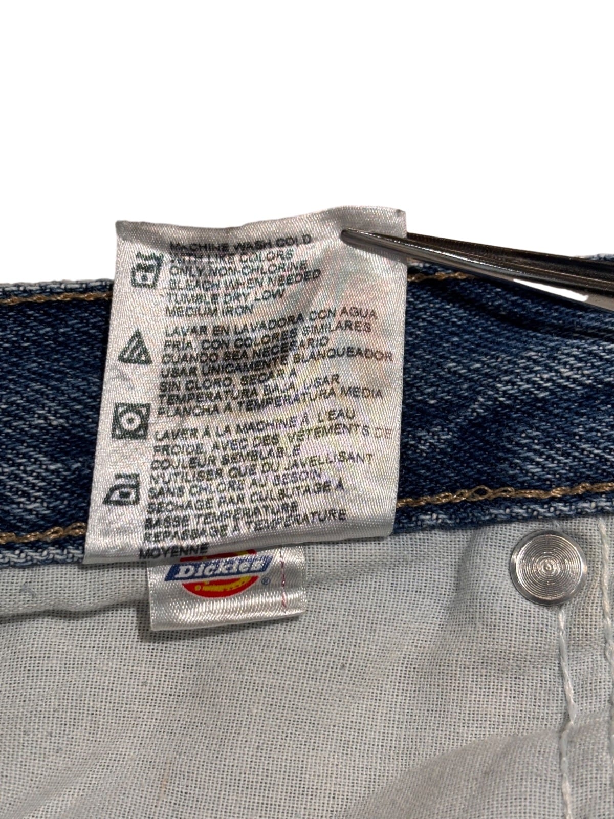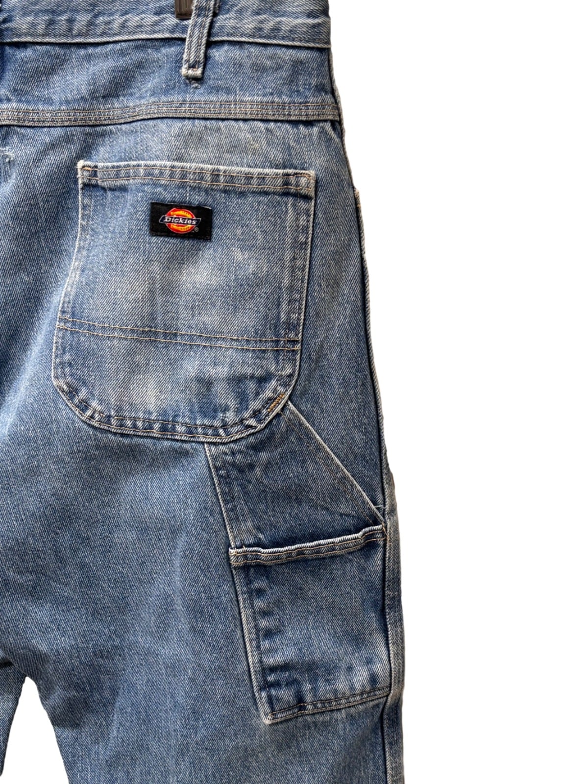 Dickiesのペインターパンツは、現場作業の実用性を優先したワークウェアとして広く使われ、ストリートやワークミックスの定番にも落とし込まれてきた定番アイテムです。今回の個体はタグ表記に"100% COTTON"、"MADE IN HONDURAS"、および現行のケアラベルやUPC表記があることから、量産期の現代的な製造背景を持つモデルと推定されます。金属ボタンにブランド刻印、バックポケットの小パッチなど、ワーク用途を示すディテールを備えた一本です。