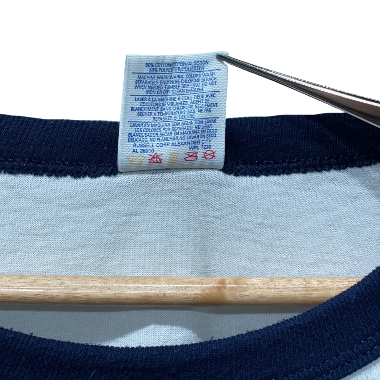 ボディは50/50の薄手ジャージーで、着込まれた柔らかさと適度なヘタリ感がある。