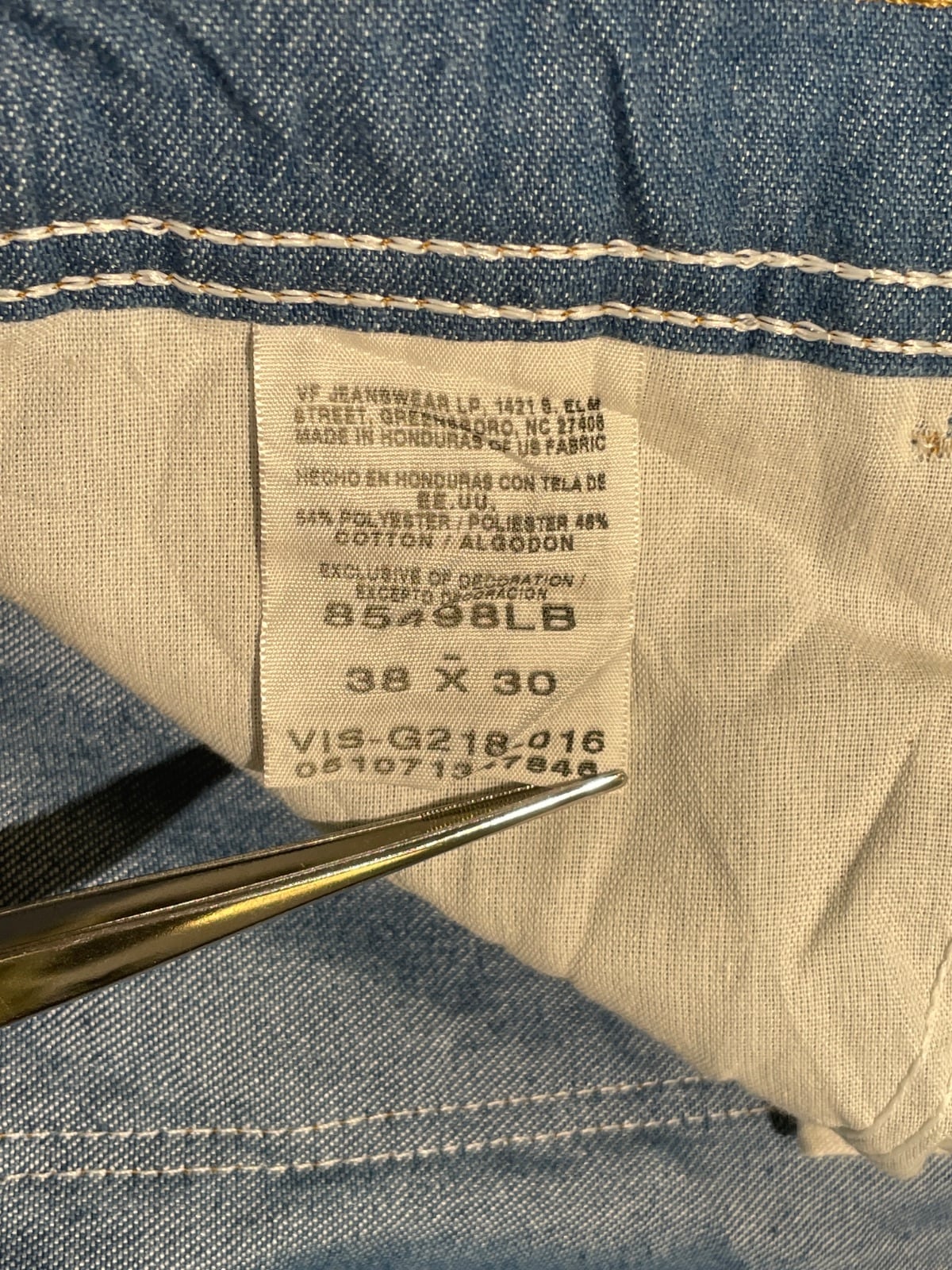 内側のケアタグ表記と "Made in Honduras" 表示、YKKジッパーといった仕様から、90sの量産期モデルと推定され、ワークウェアとしての実用性を重視した作りが続く時代の個体です。