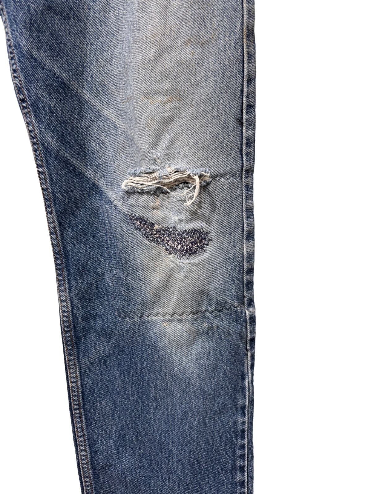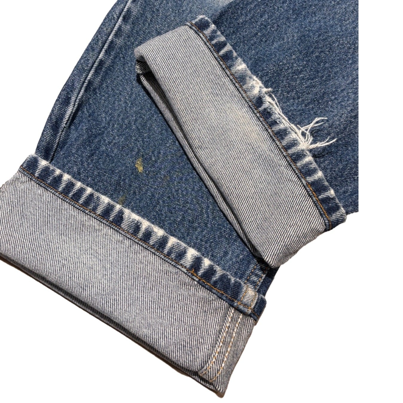 右膝にダメージとリペア、所々に小さなペンキ跡や擦れがありワーク感のある表情になっています。