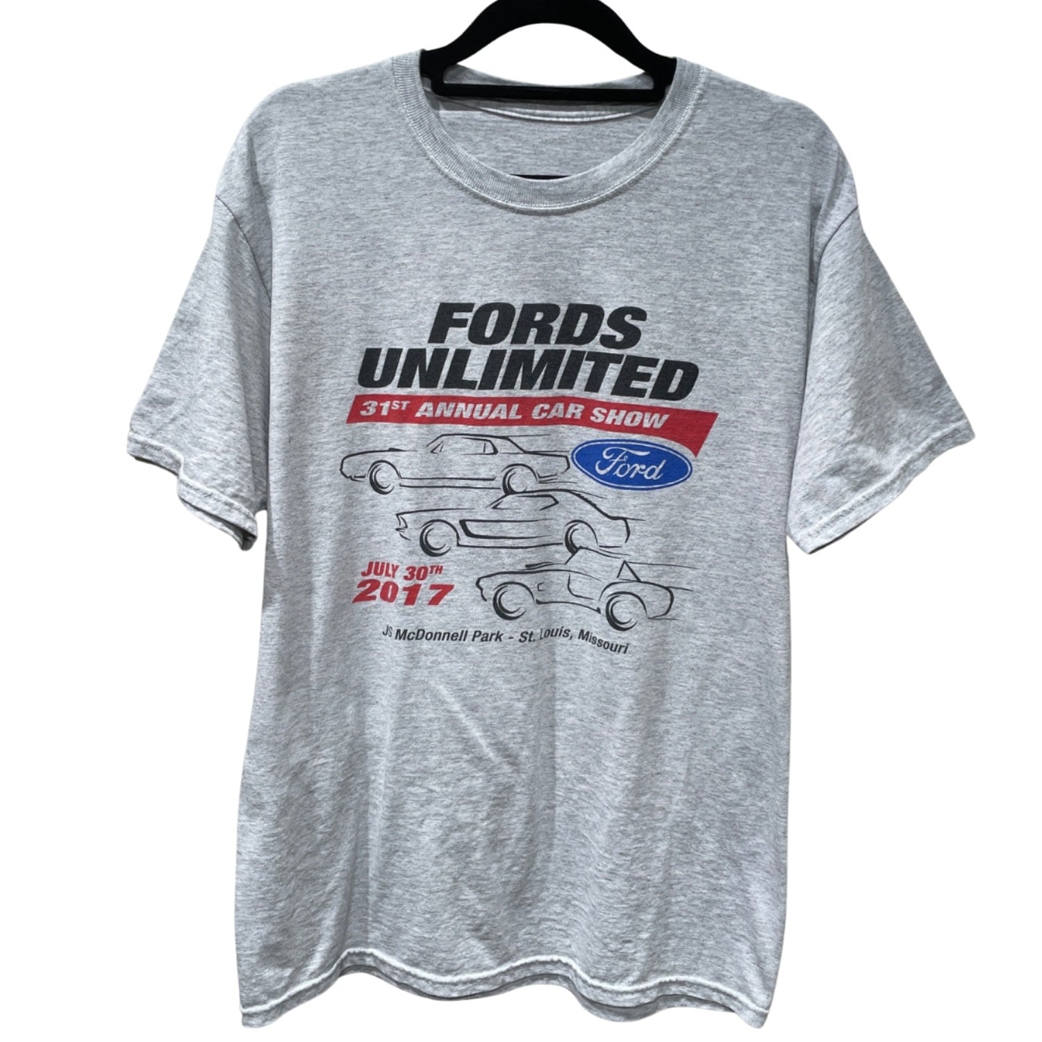 Fords Unlimitedの31回目となるカーショーの参加者向けに作られたイベントTシャツであることが読み取れる一着。