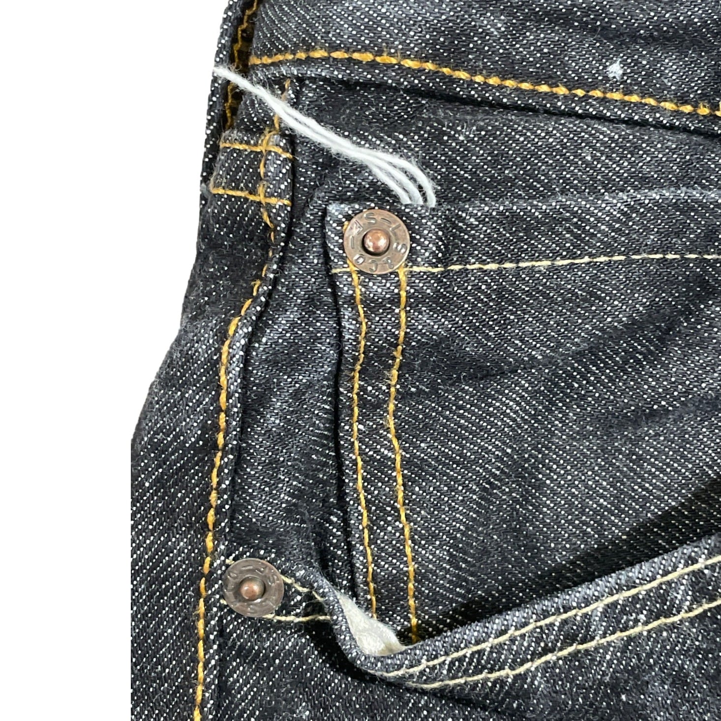 ボタンフライ仕様でクラシックなディテールを残しており、しっかり目の濃色デニムが存在感を出します。
