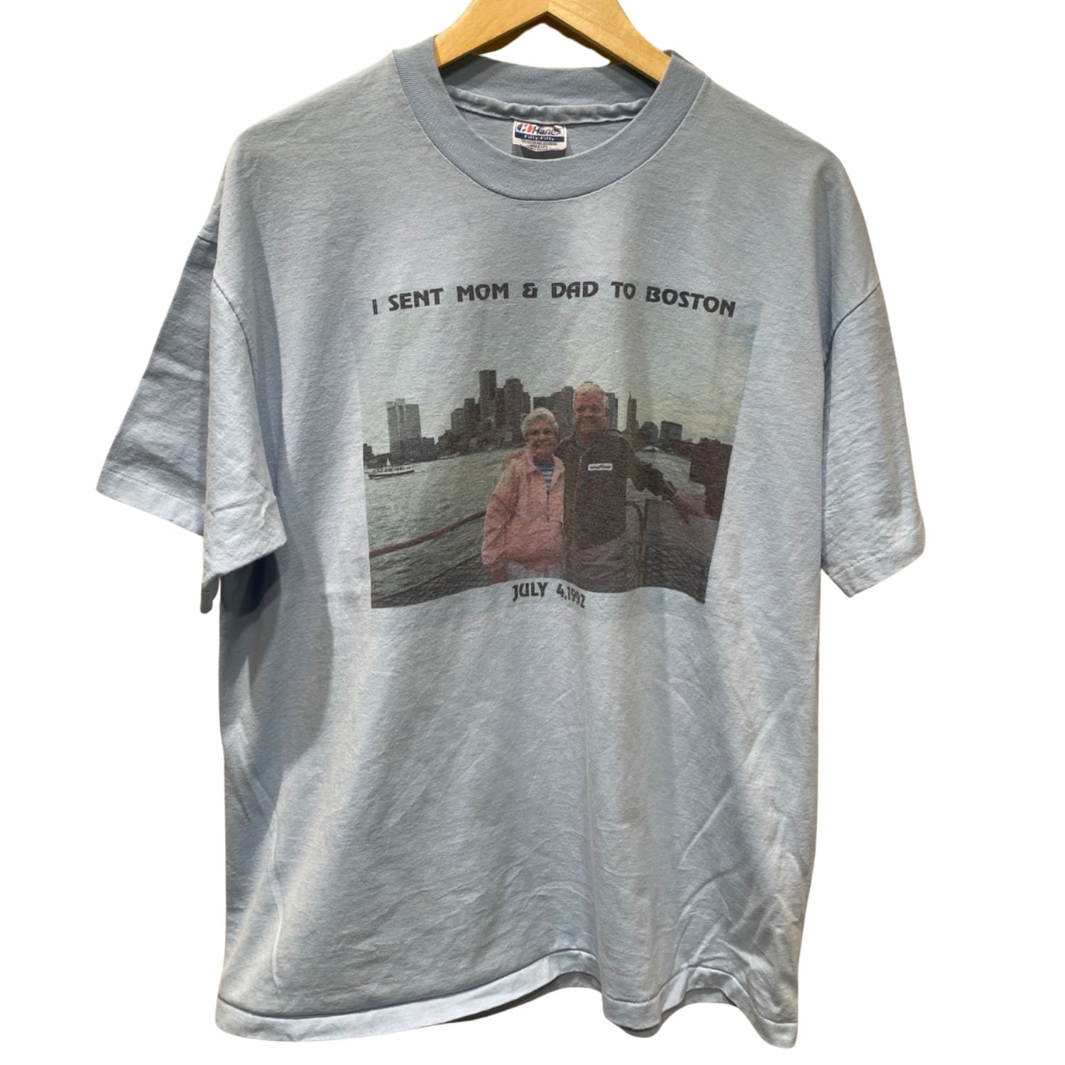 旅先のスナップをそのまま落とし込むフォトプリントTは、90sに個人の記念写真がTシャツ文化として流通した流れを体現するアイテムである。