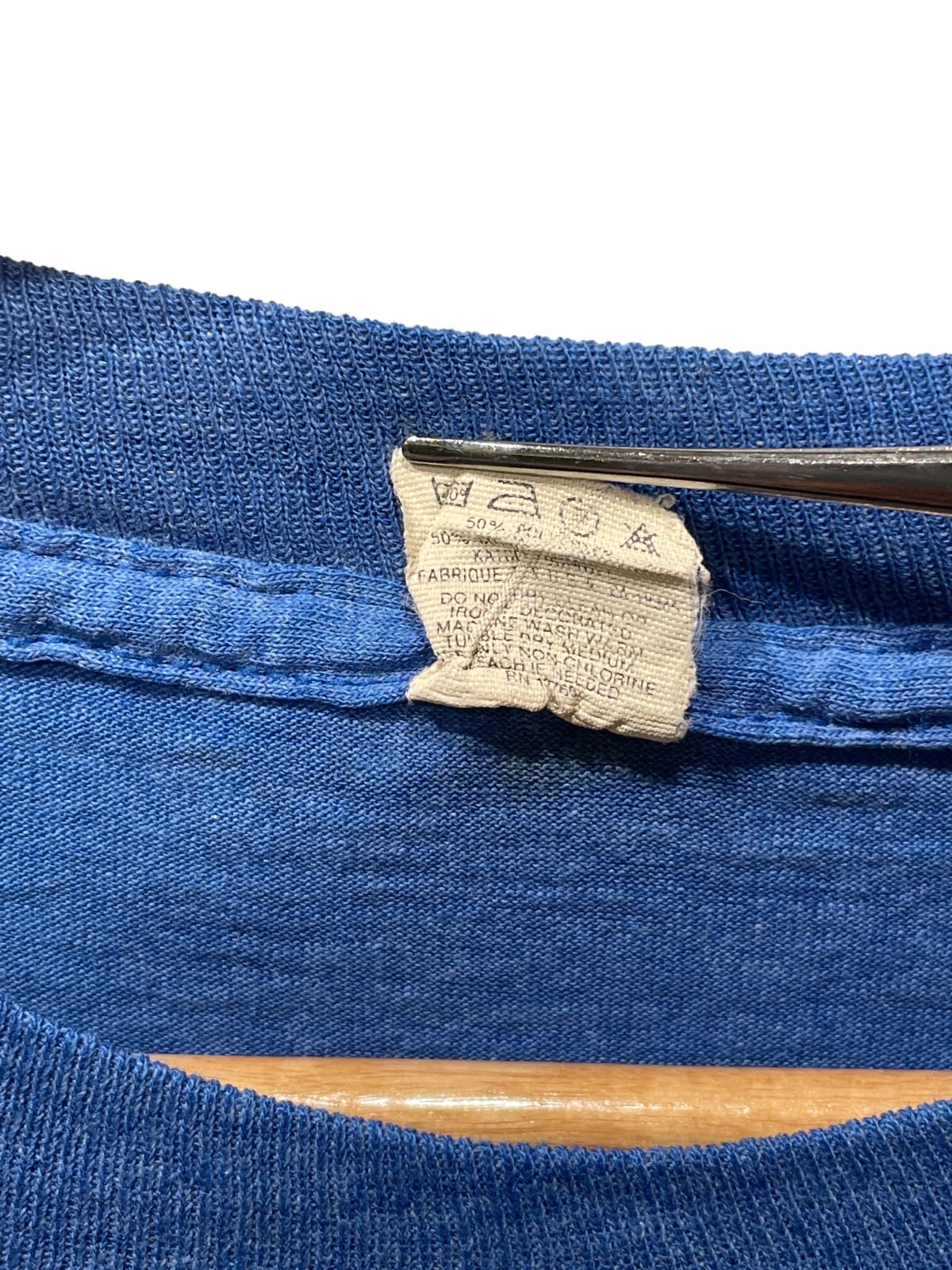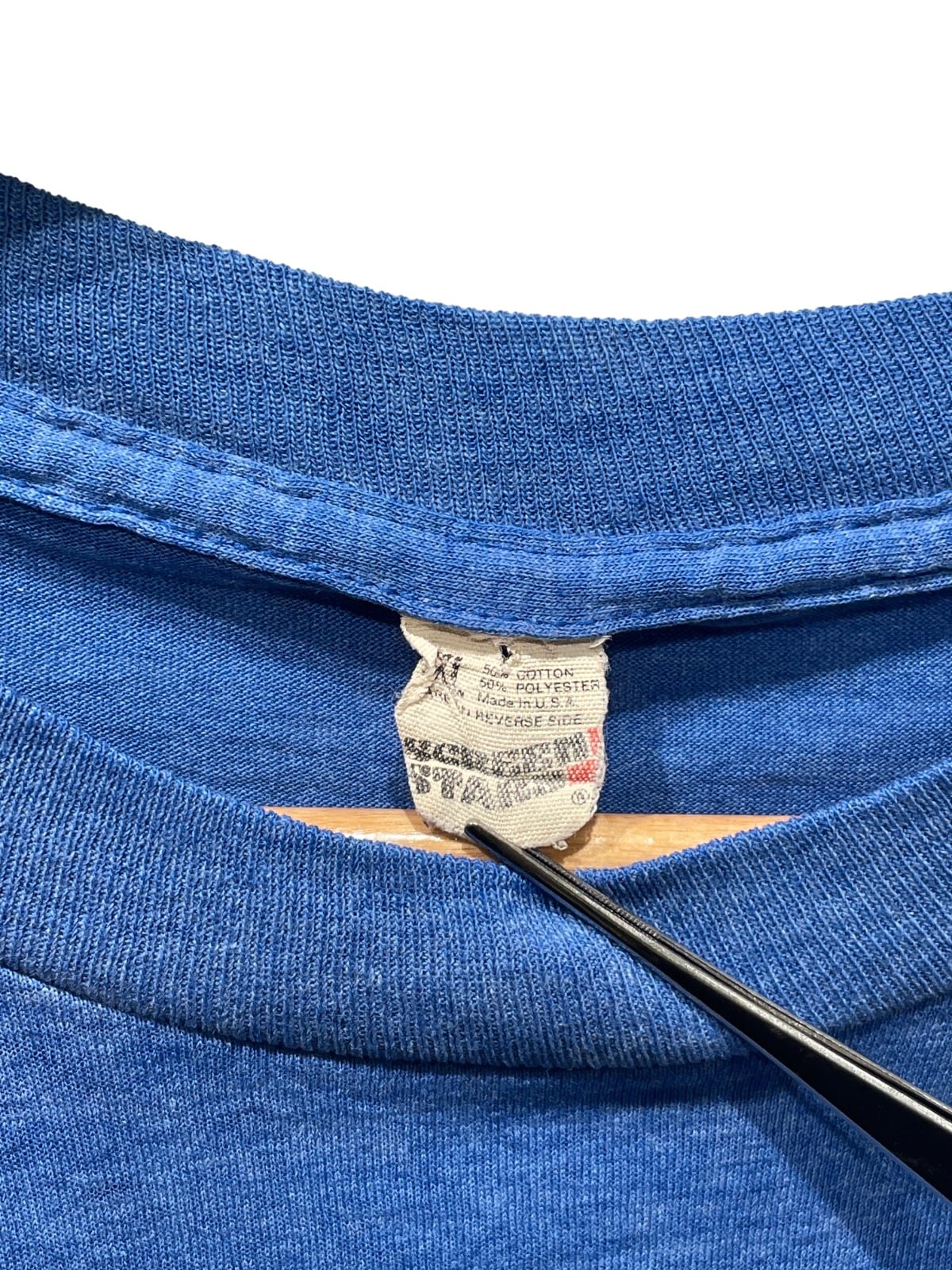 USA製のタグとコットン/ポリエステルの混紡仕様がワーク寄りの普段着として着込まれてきた雰囲気を残している。
