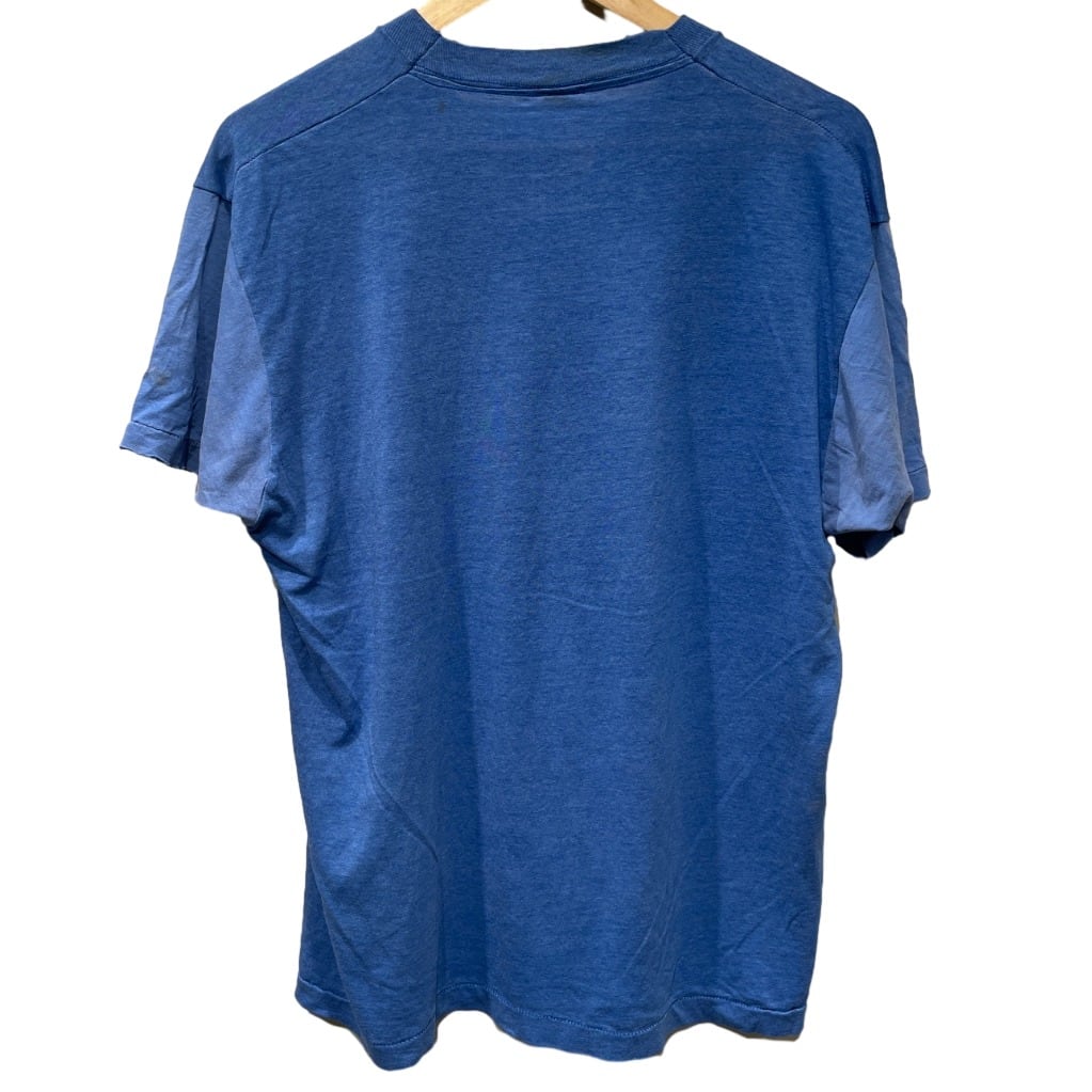 フロント中央にトラックのプリントが入り、プリントには色褪せとひび割れが見られる。