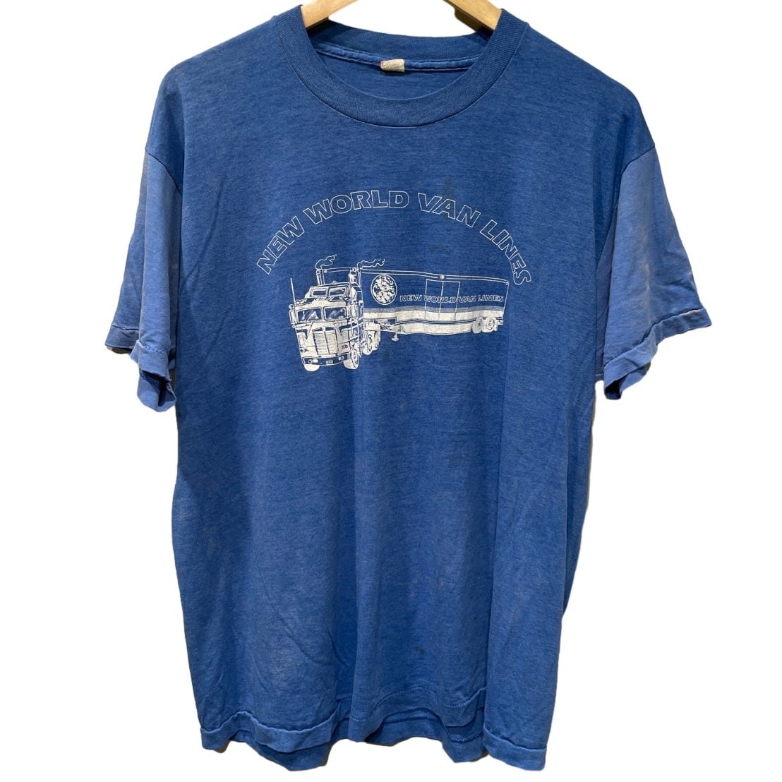 【80s USA製モーターカルチャーT】NEW WORLD VAN LINES トラックプリント 半袖Tシャツ(Lサイズ相当/USA製)