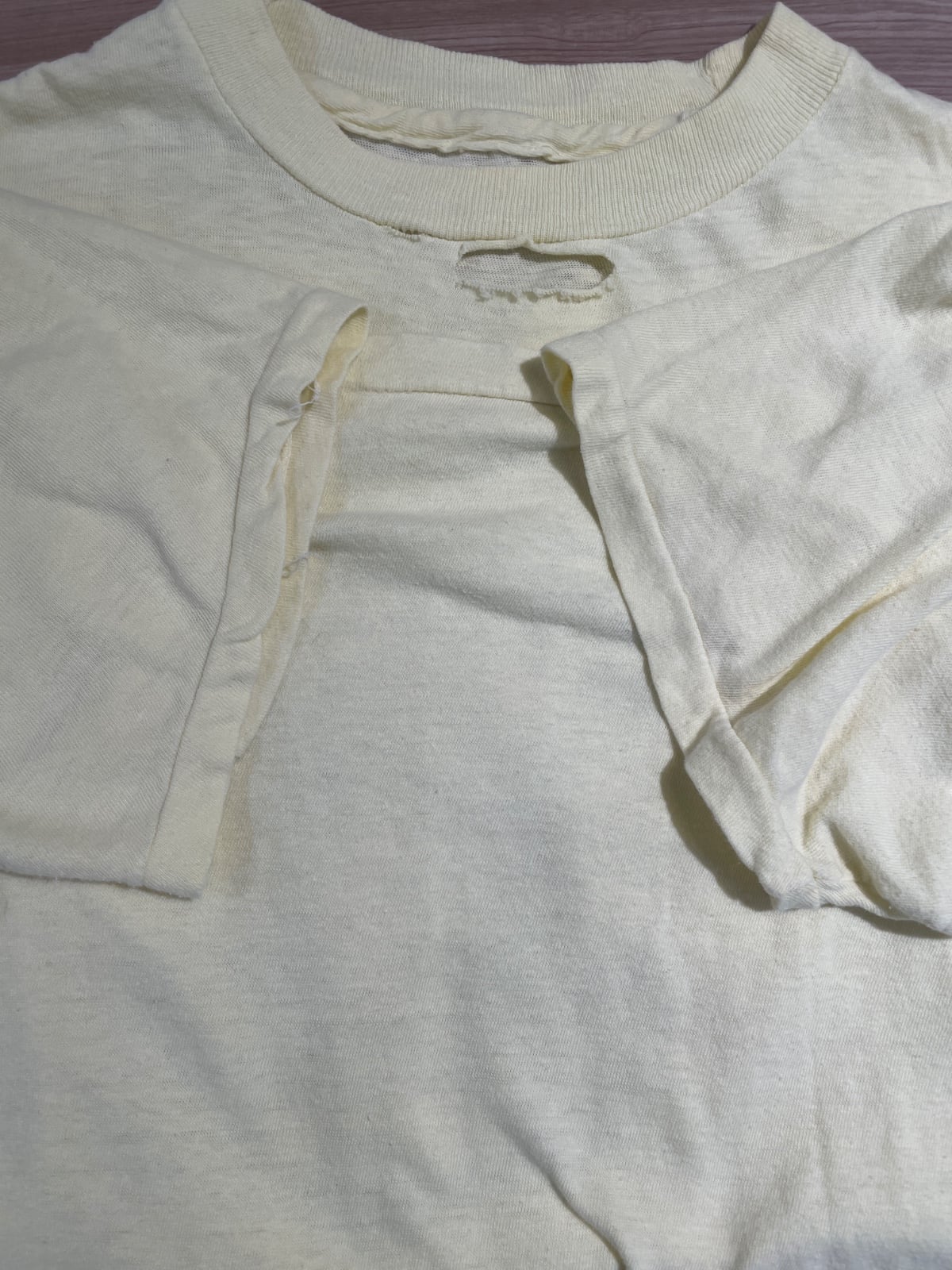 薄手のボディと経年による色褪せが、長く着込まれたカジュアルウェアの空気感を出しています。