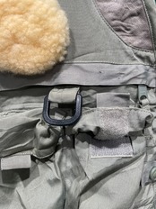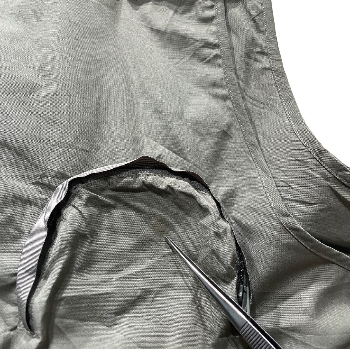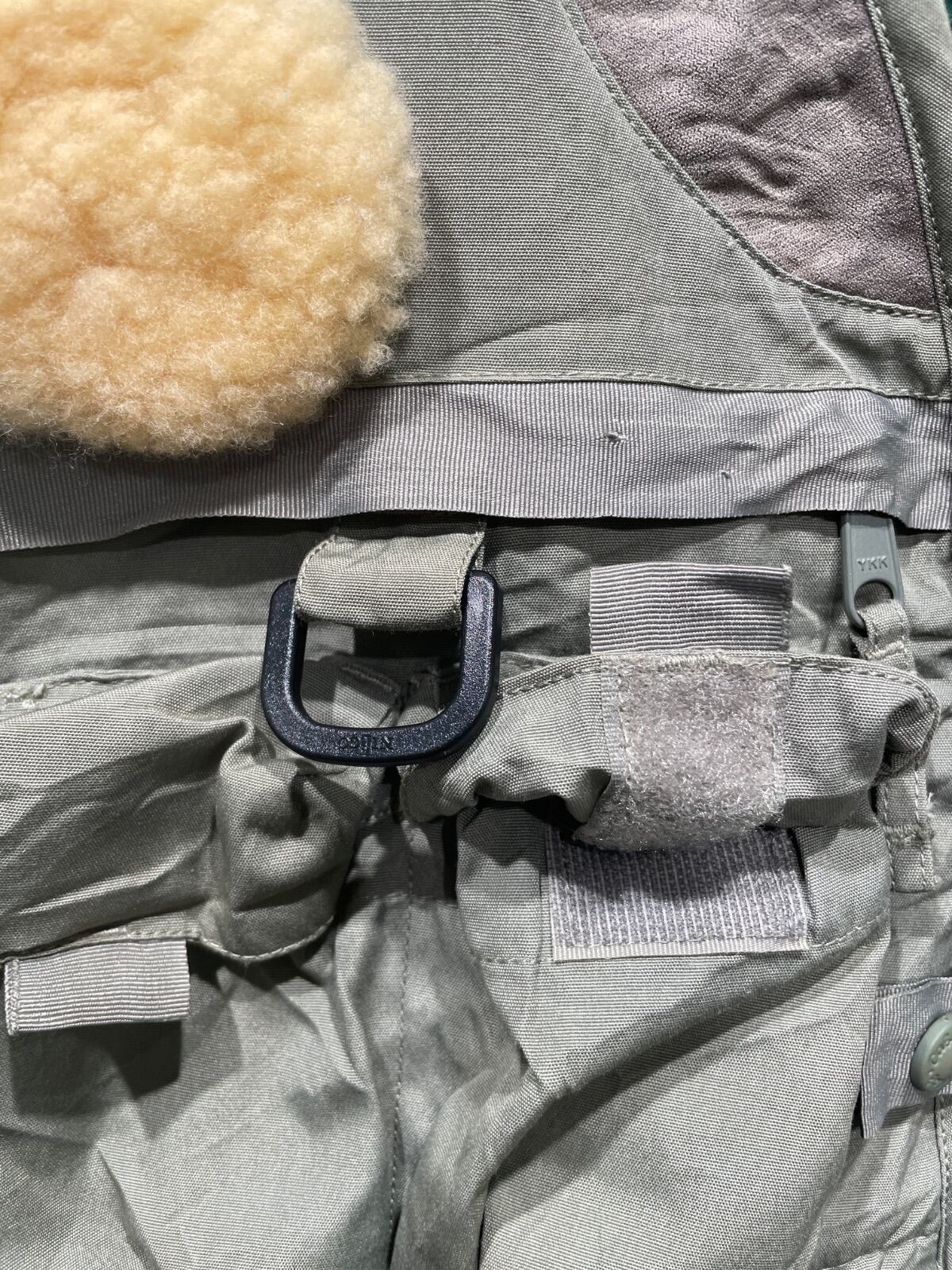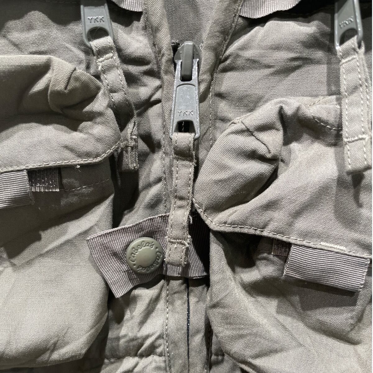フロントに多数のジップポケットやフラップポケット、Dリングを配し収納力と機能性を重視したディテール。