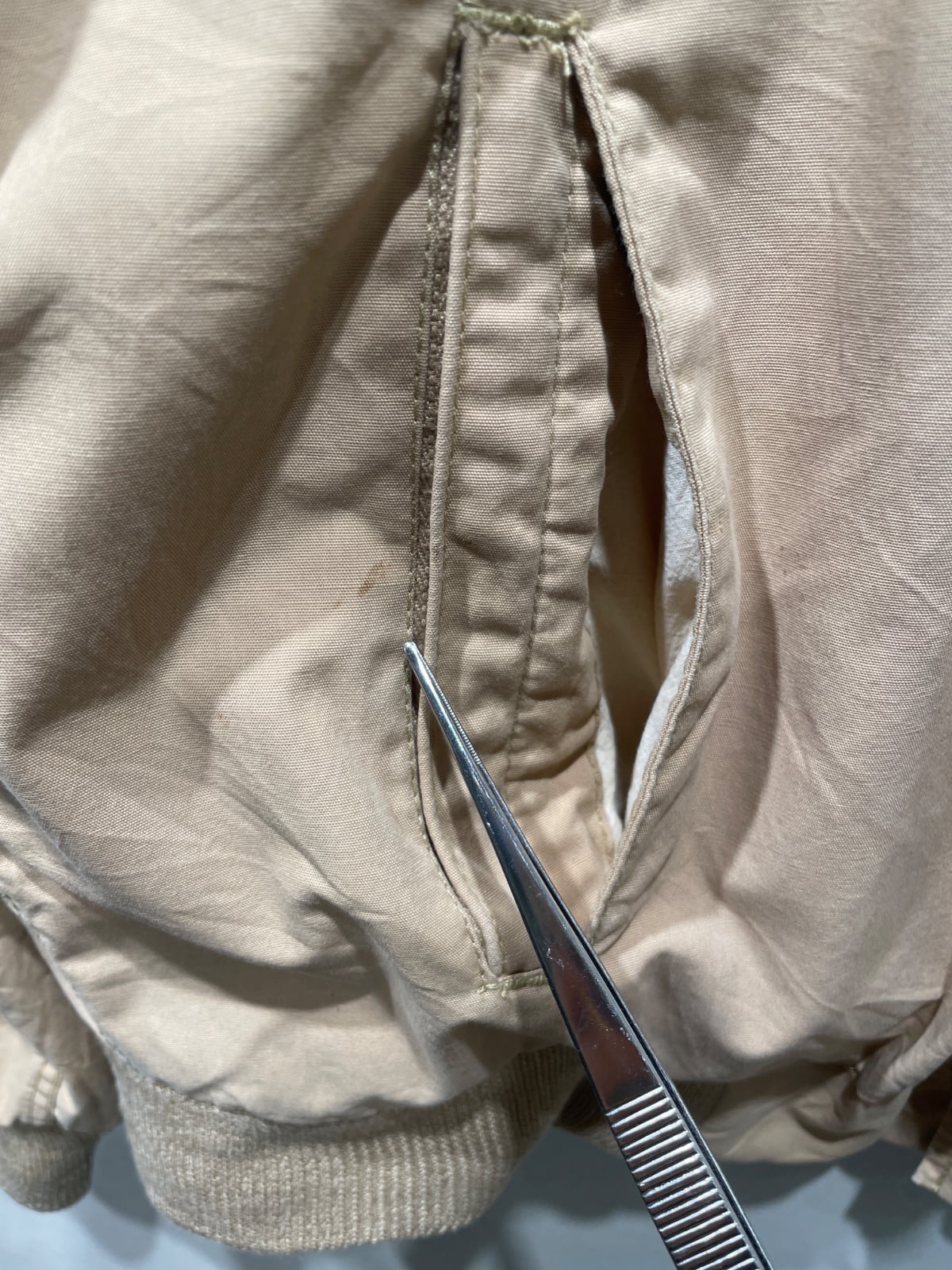 前立てはジップ+スナップボタンの二重構造で着脱しやすく、ポケットはハンドウォーム仕様で実用的である。