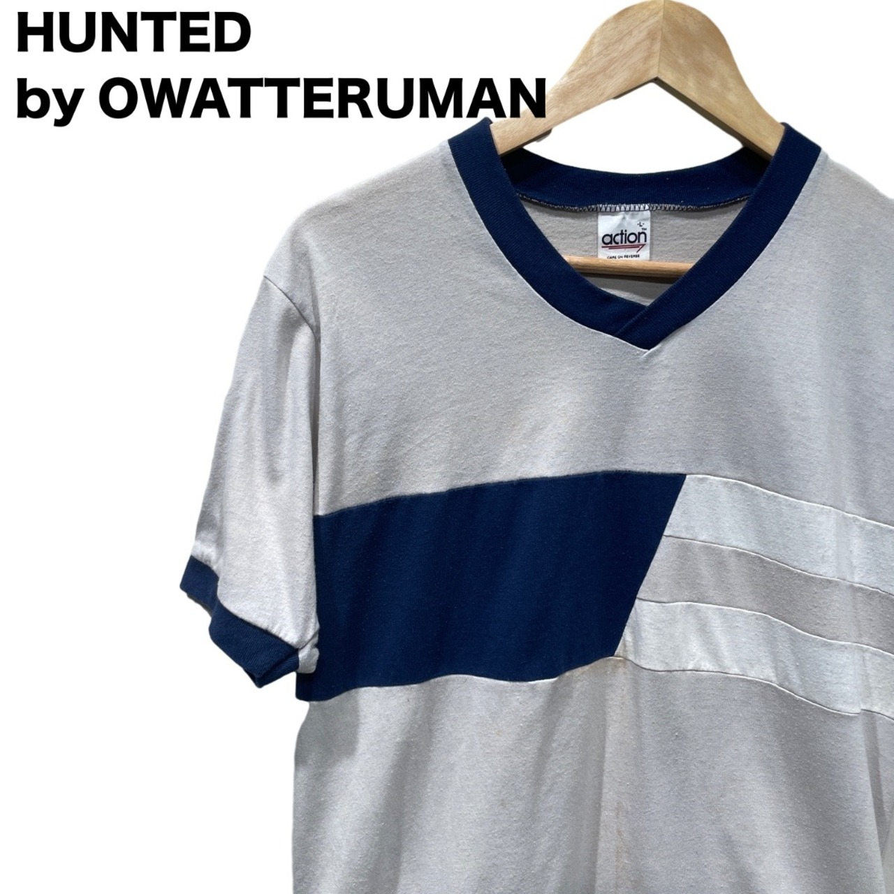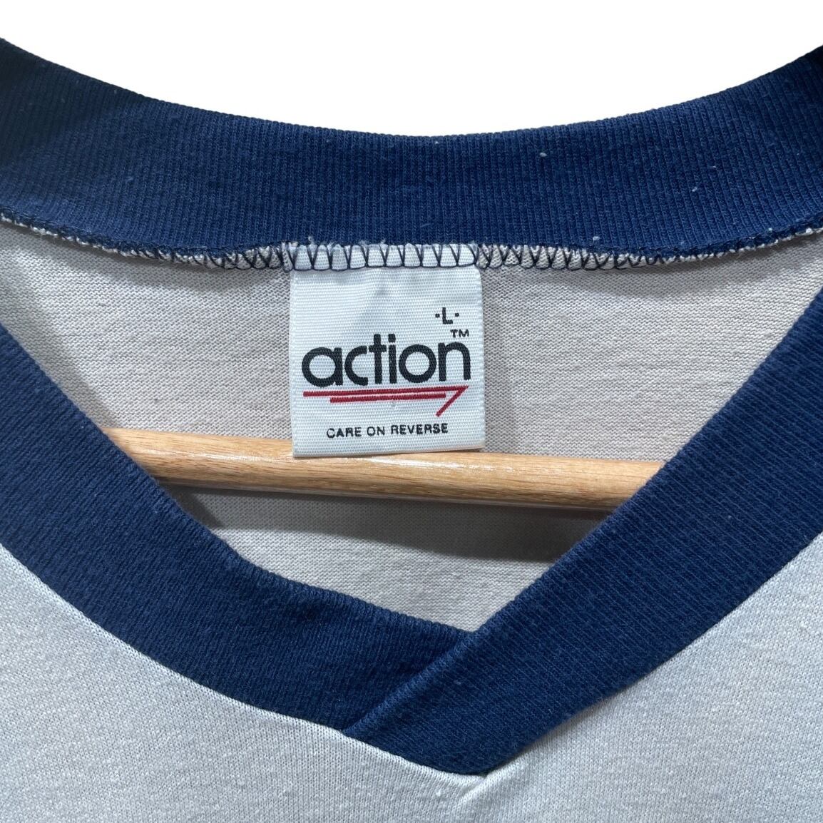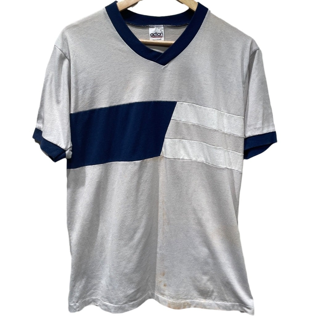 【90s action】ライン切替VネックTシャツ(Lサイズ/USA製)