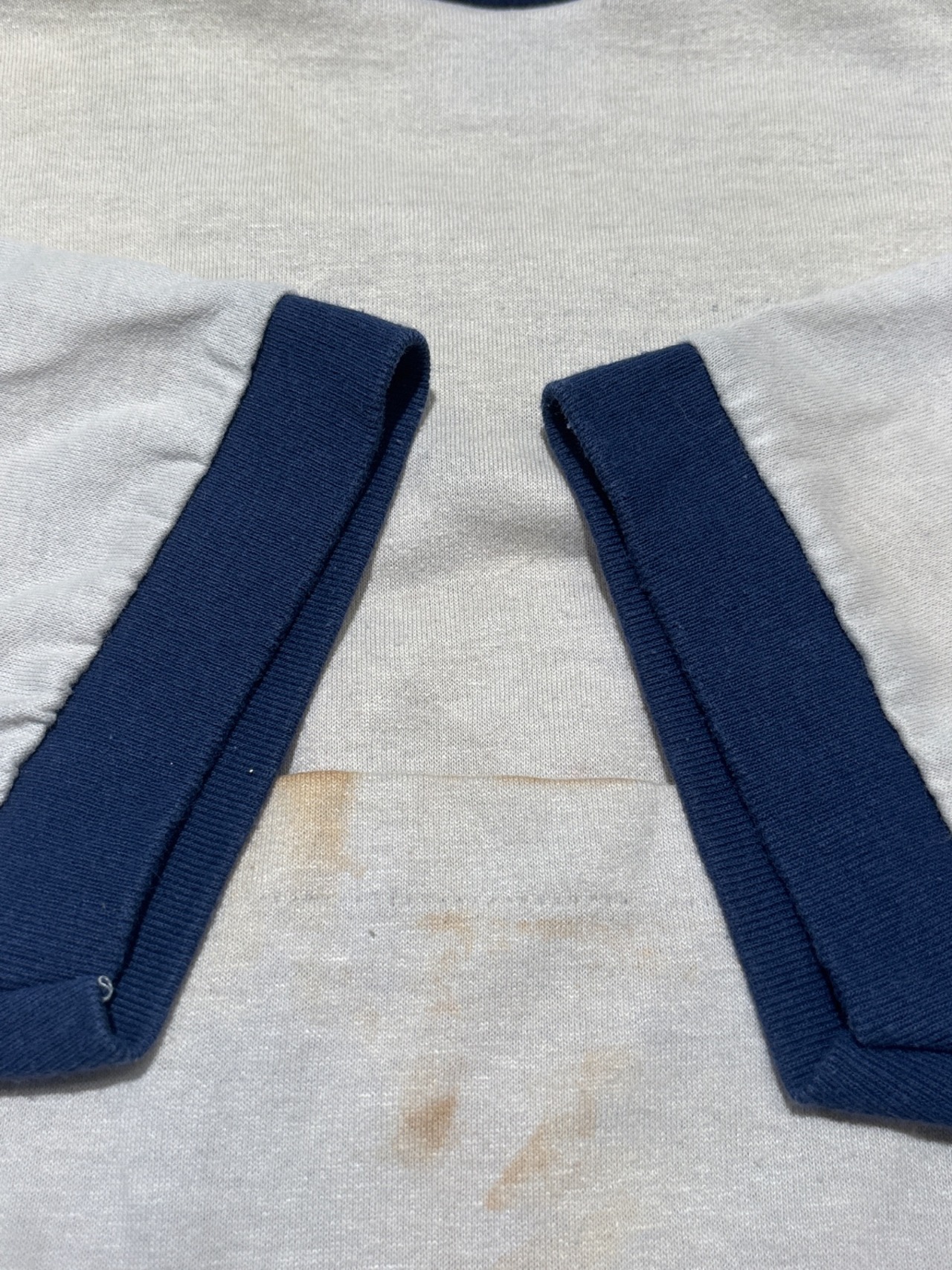 US製のリンガーVネックTはスポーツウェアの影響を受けたカジュアルウェアとして広く着られてきたアイテム。