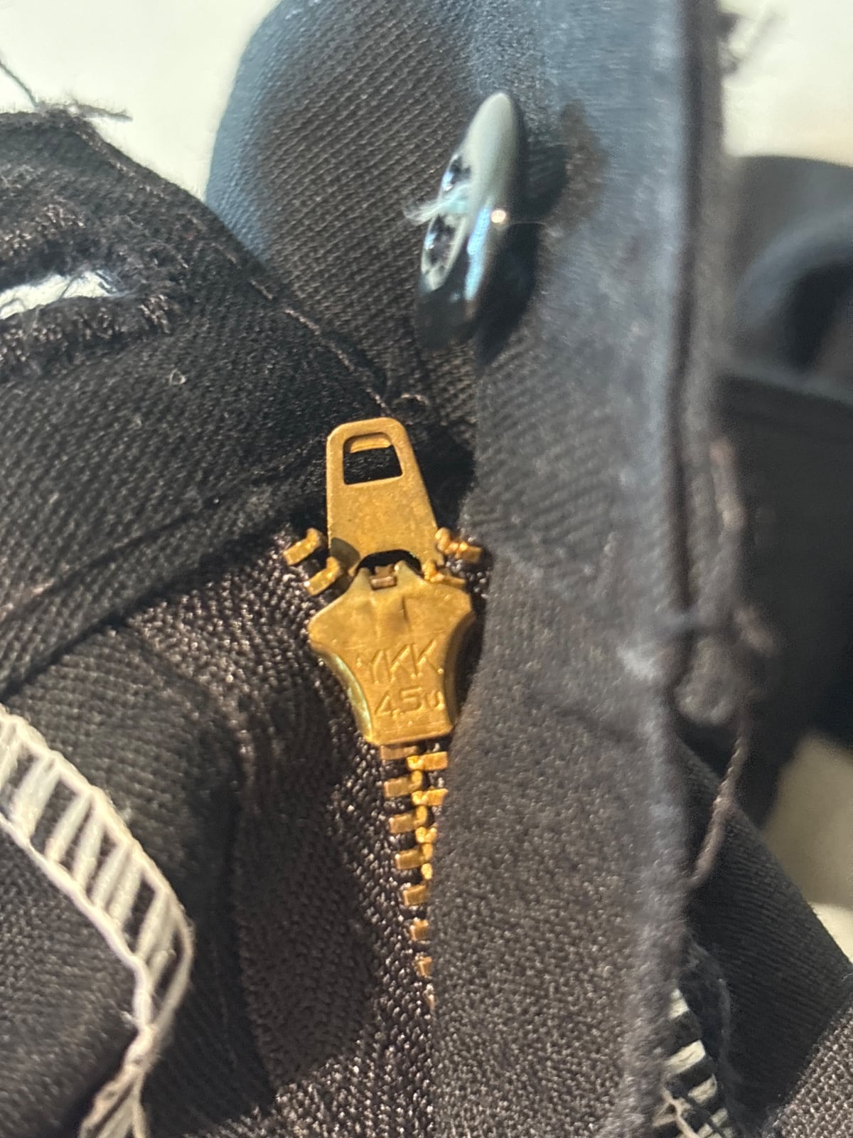 この個体はホンジュラス生産の現行期ワークパンツで、耐久性重視のポリエステル混素材を採用した実用性の高い一本。