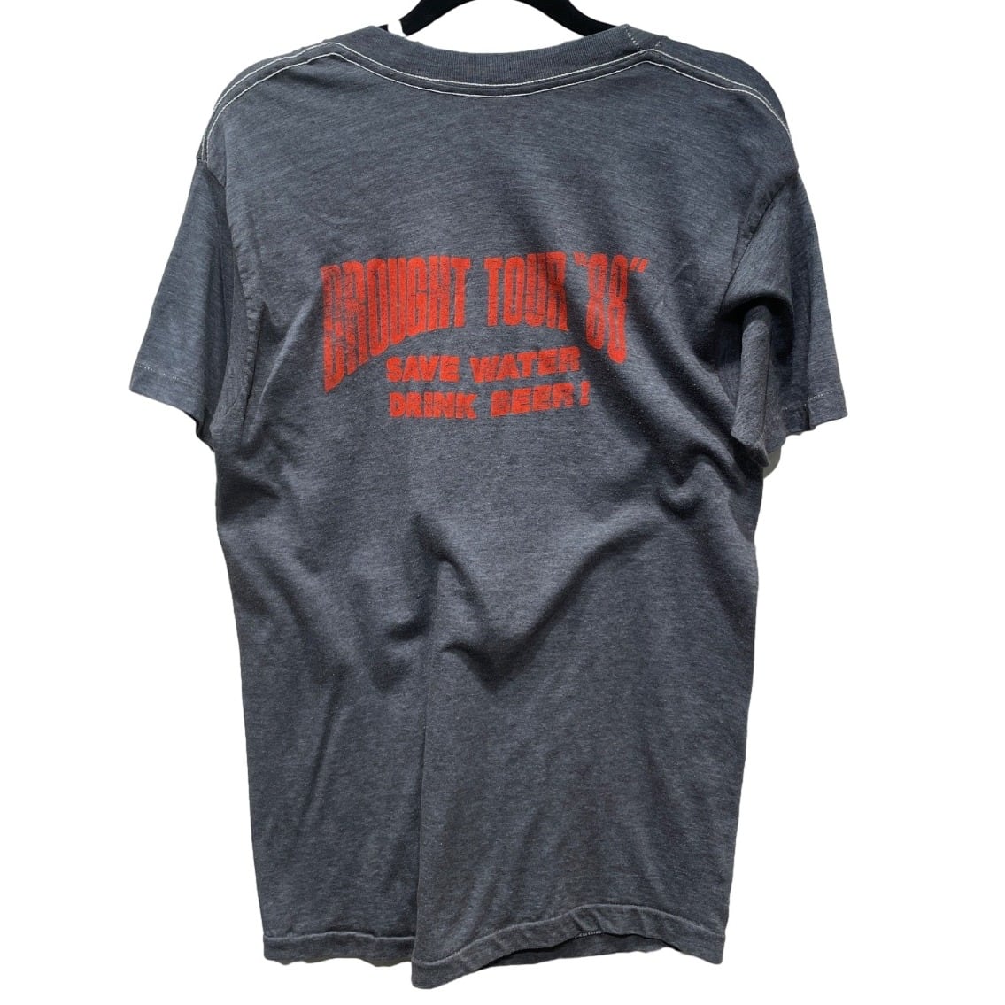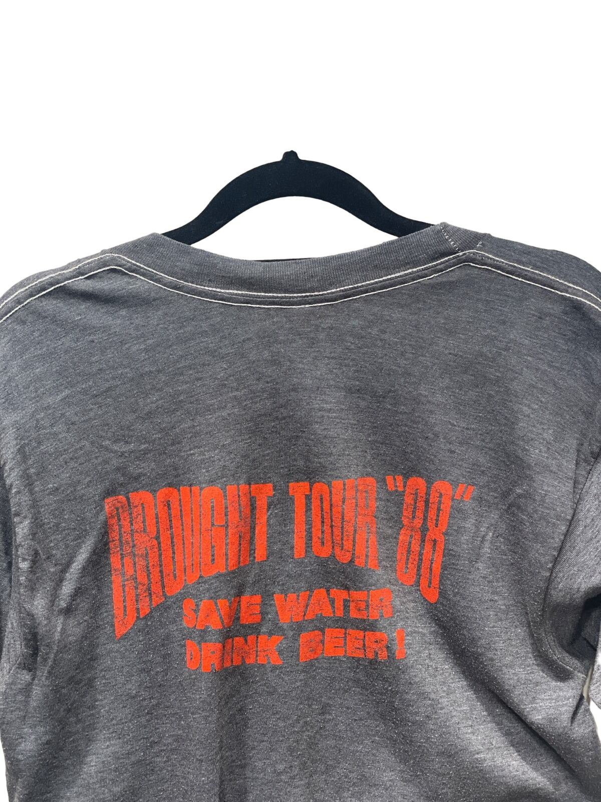 胸に大きく"Overdue"のロゴ、背面にDrought Tour '88と「SAVE WATER DRINK BEER!」のツアーテキストが入るアイテムです。