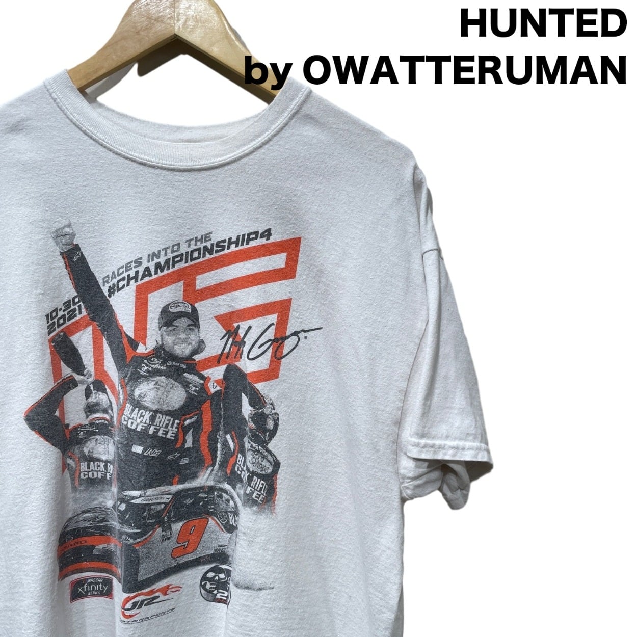 レーシングチームの応援やイベント向けに作られるチームTシャツという文脈のアイテム。