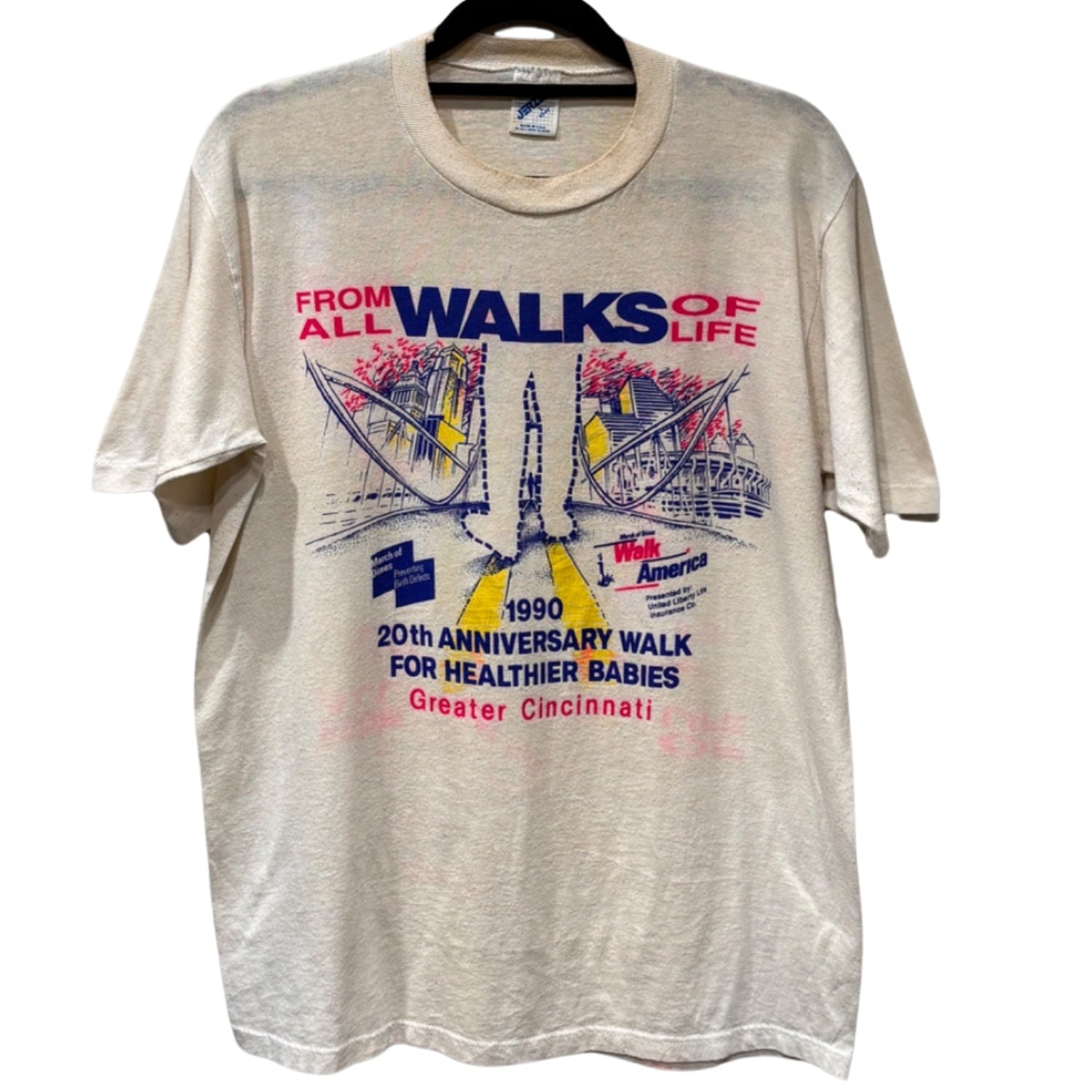 1990年開催の『20th ANNIVERSARY WALK FOR HEALTHIER BABIES』のイベントTシャツであることが読み取れる個体。