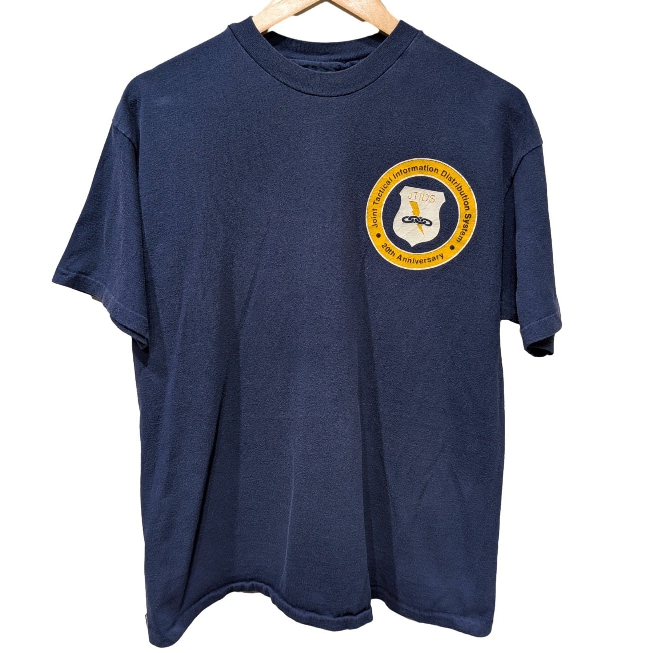 軍用の通信システムを示すJTIDS(Joint Tactical Information Distribution System)のロゴと機体プリントを配した記念品的なTシャツ。