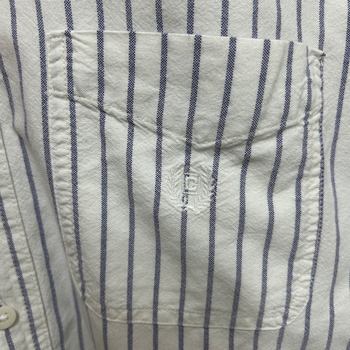 プレッピー寄りのボタンダウンシャツで、カジュアルからキレイめまで馴染む定番の佇まい。