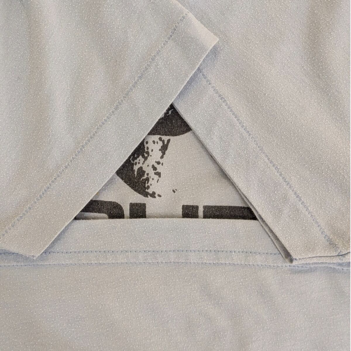 襟はリブ仕様でしっかりした作り、袖と裾はダブルステッチの処理。