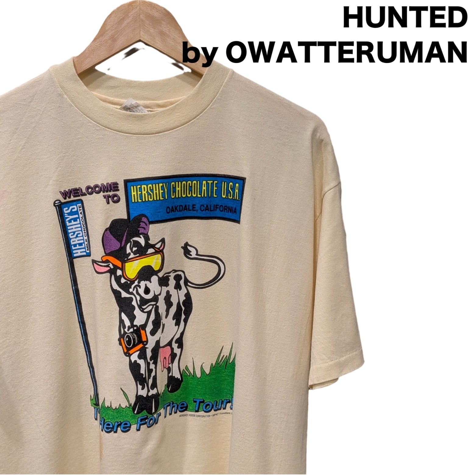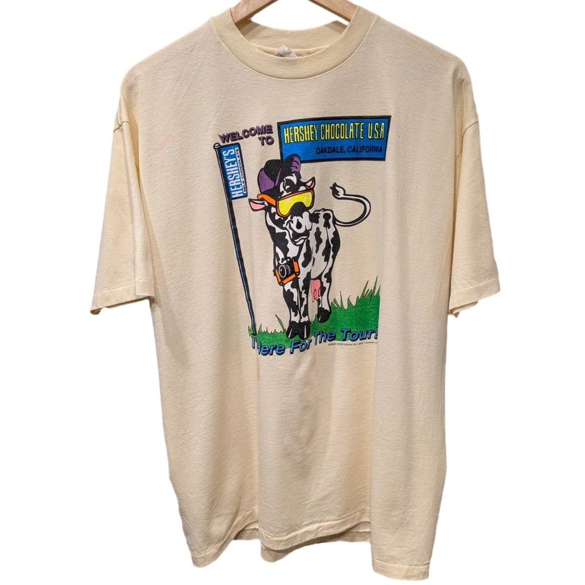 古着 【90s Hanes ナニコレアニマル】Hershey チョコレート ツアー カウ プリントTシャツ(XLサイズ/USA製)