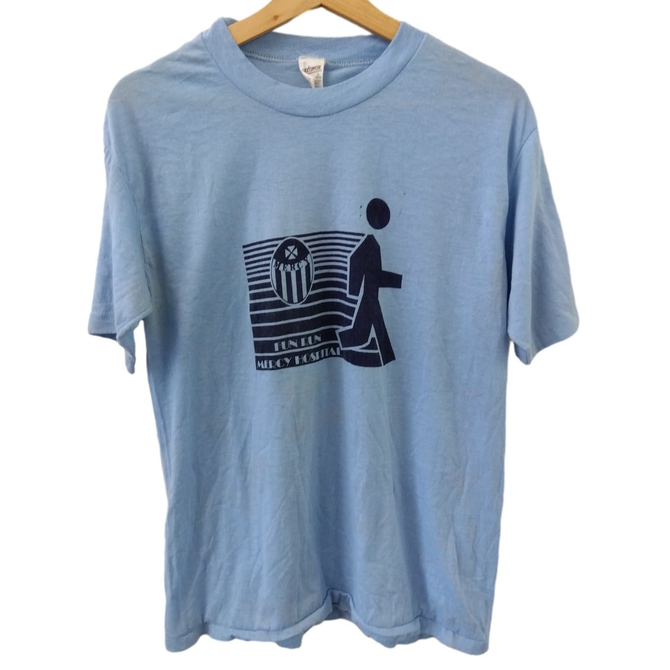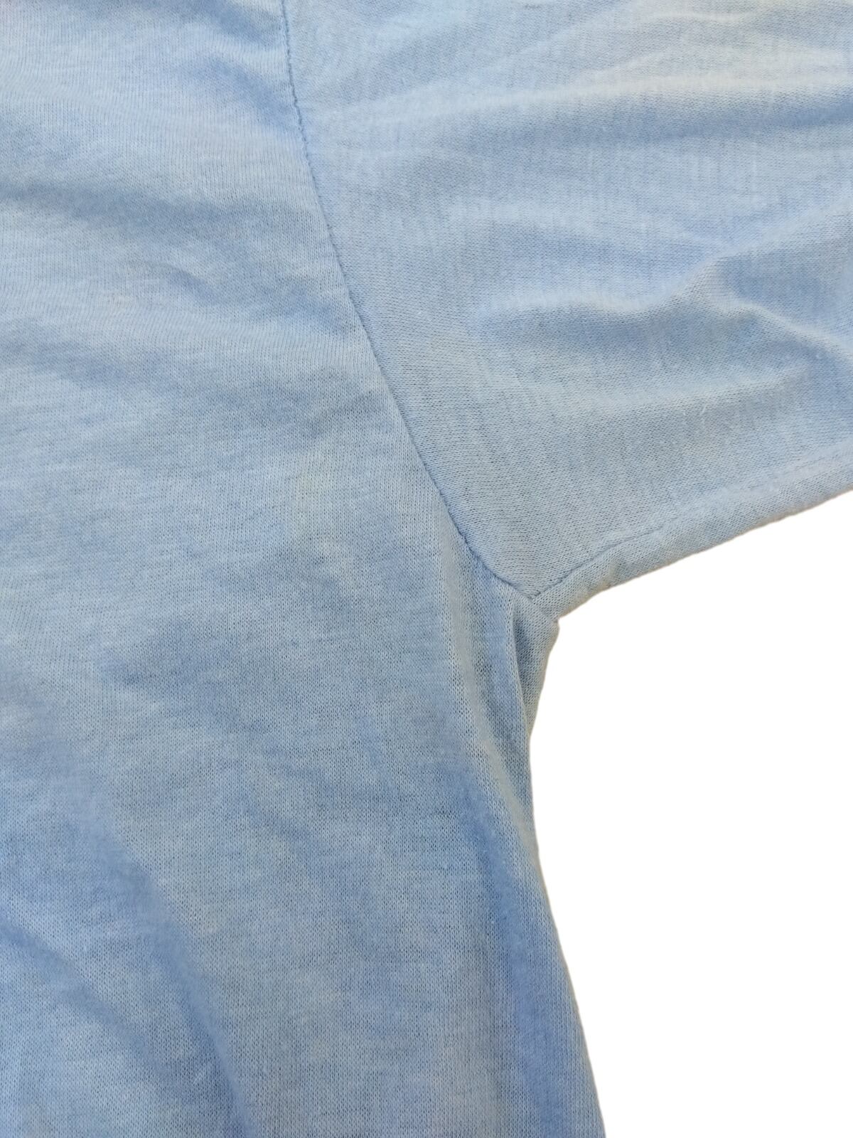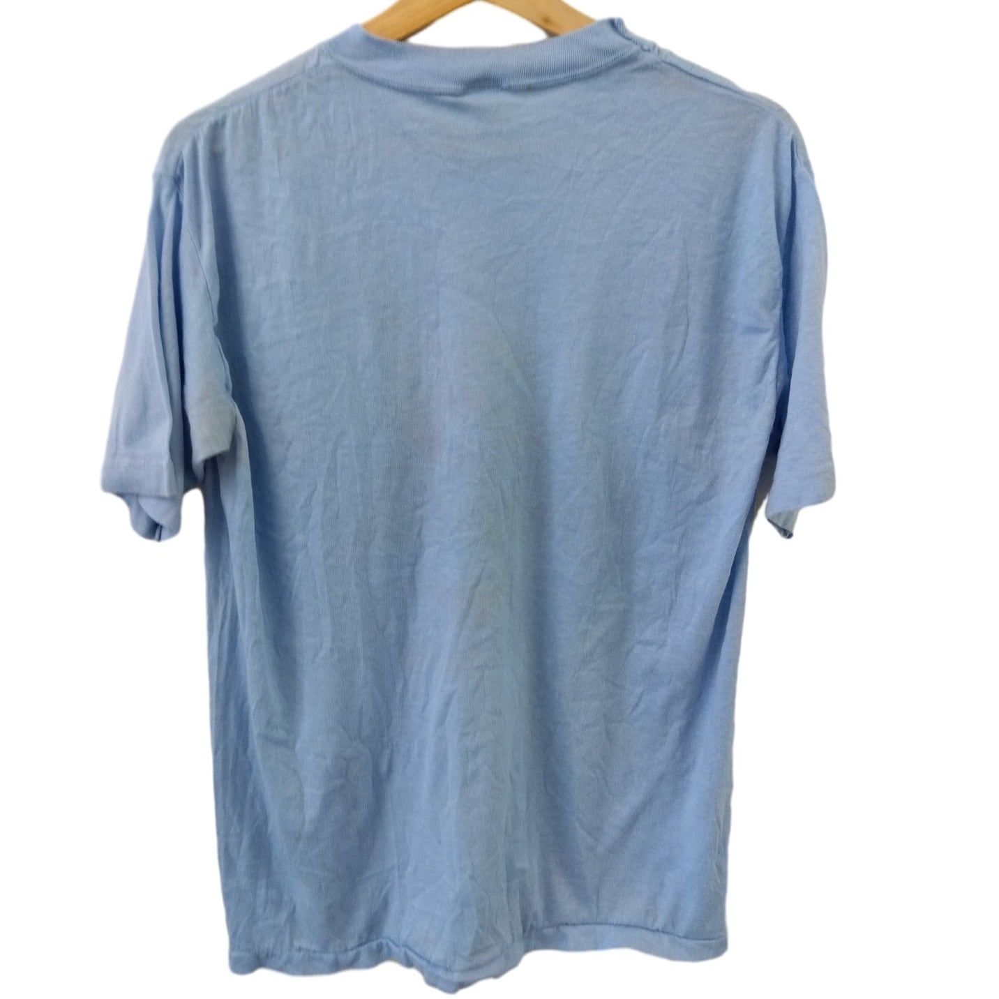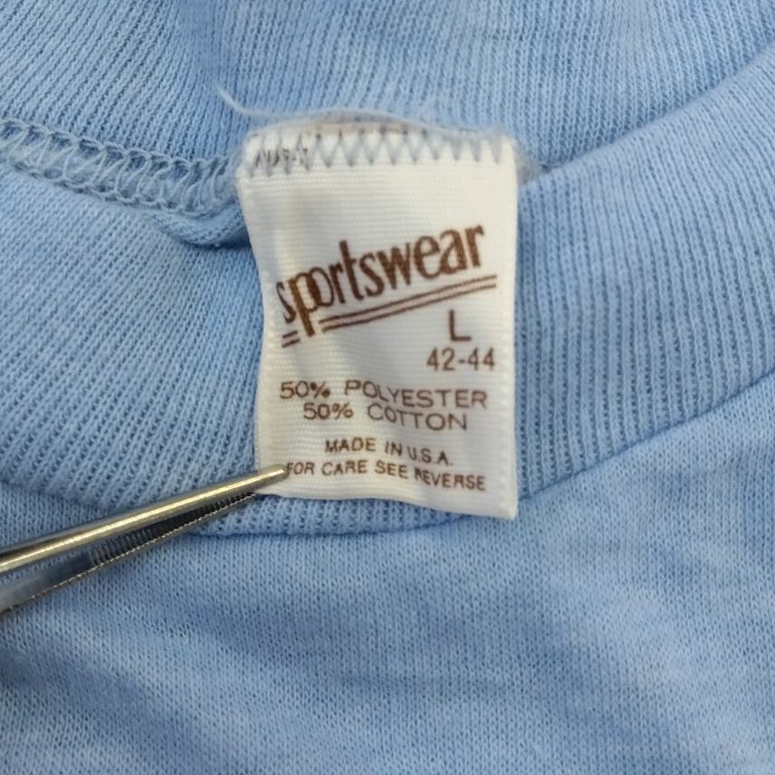 古着 【90s sportswear ナニコレ】ヘザーブルー プリントTシャツ(Lサイズ/USA製)