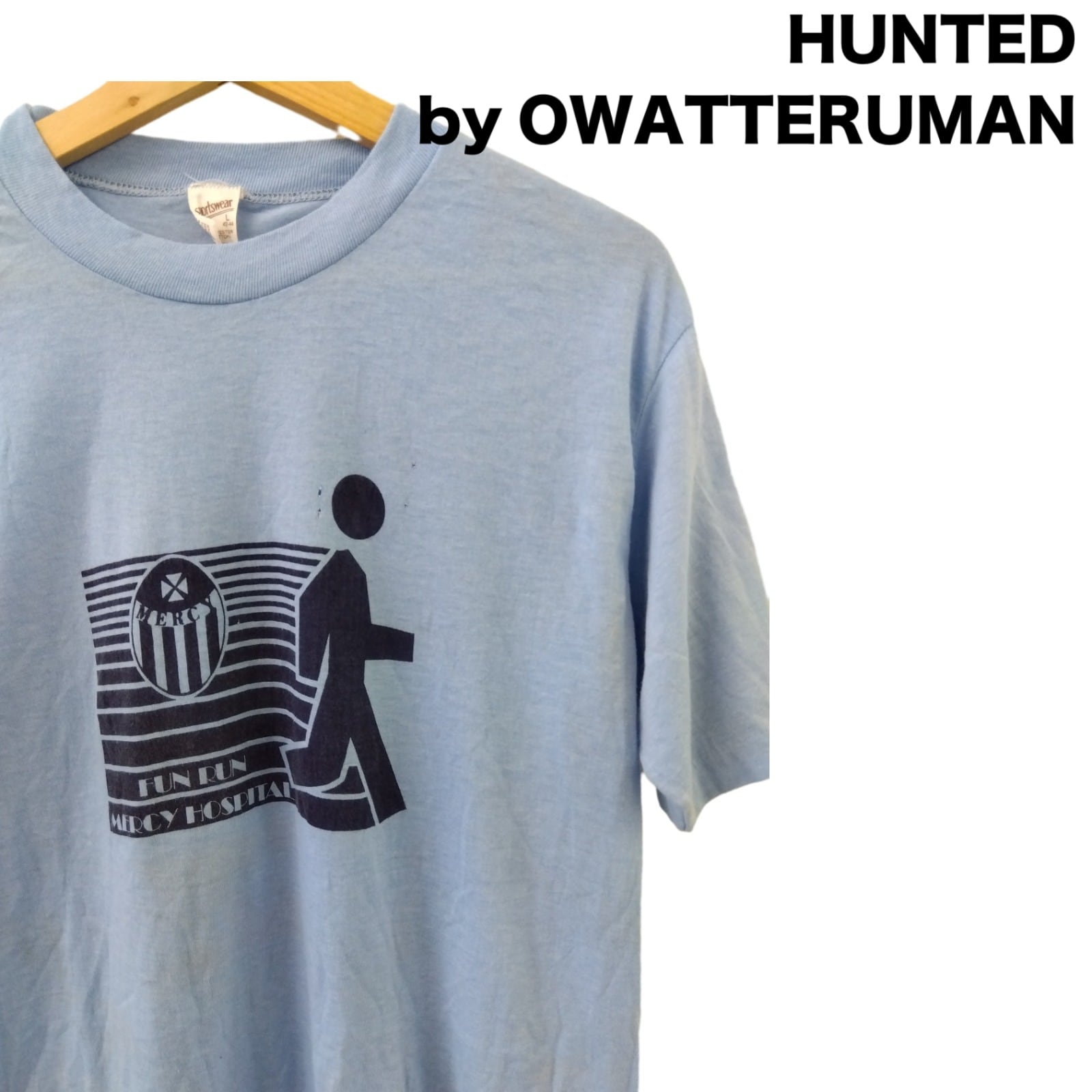 アメリカ製の50/50ボディを使ったプリントTシャツで、シンプルなワンポイントグラフィックがカジュアルなスポーツ/ワーク系の文脈に馴染む一着です。
