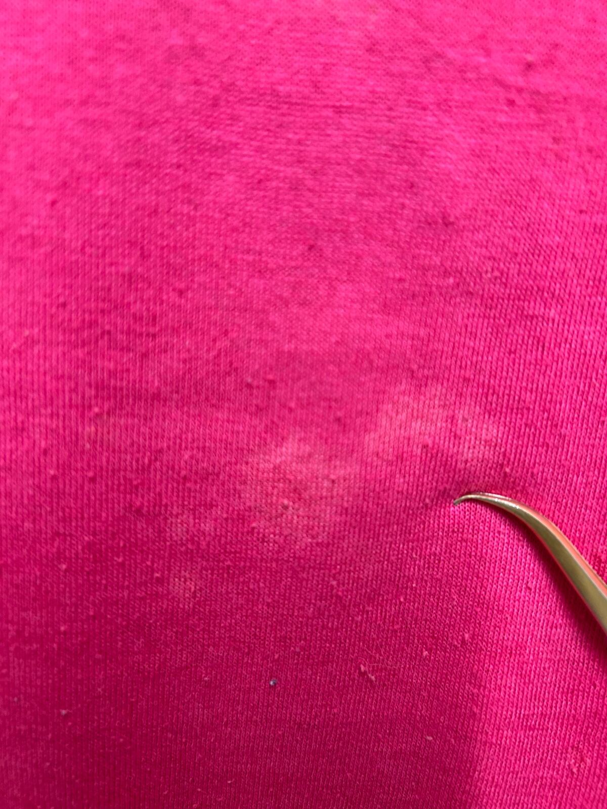 プリントには経年によるヒビ割れと薄い色あせが見られ、ボディには小さなピンホールや毛羽立ちが点在するコンディション。