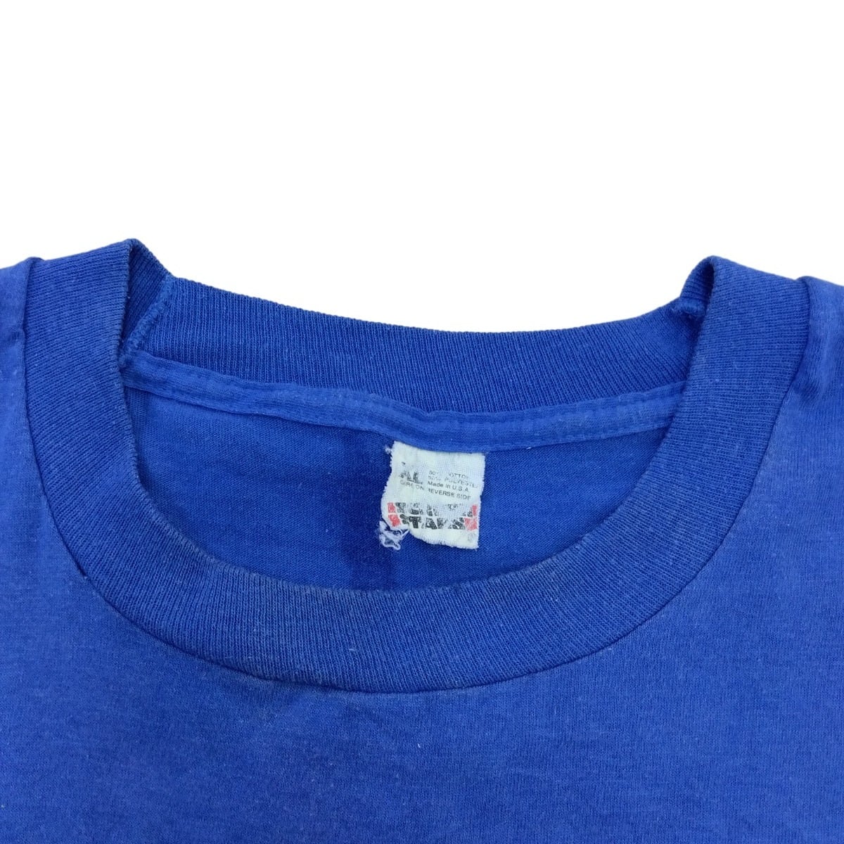 コットン50%/ポリエステル50%のミドルウェイトボディで、しっかりとした生地感が残る一着。